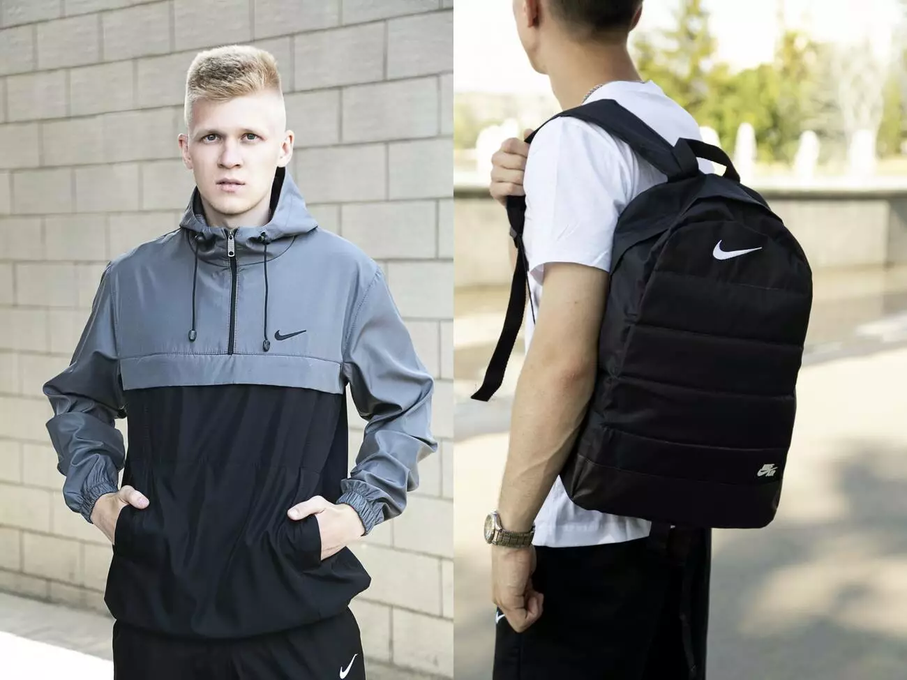 Анорак чоловічий "President" Nike сіро-чорний + рюкзак "Матрас" Nike чорний