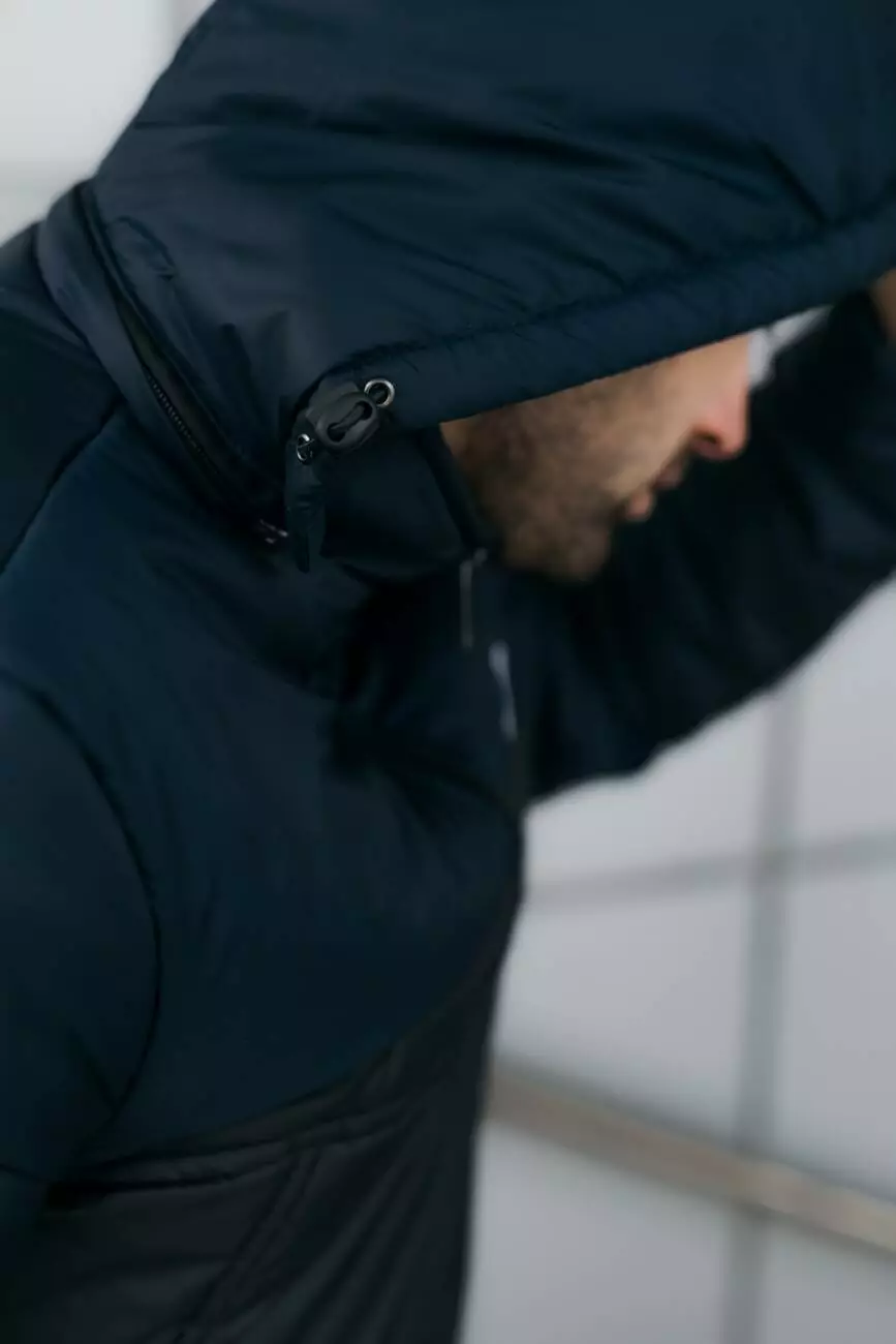 - Капюшон на блискавці, яка відстібається, регулюється гумкою на фіксаторі.