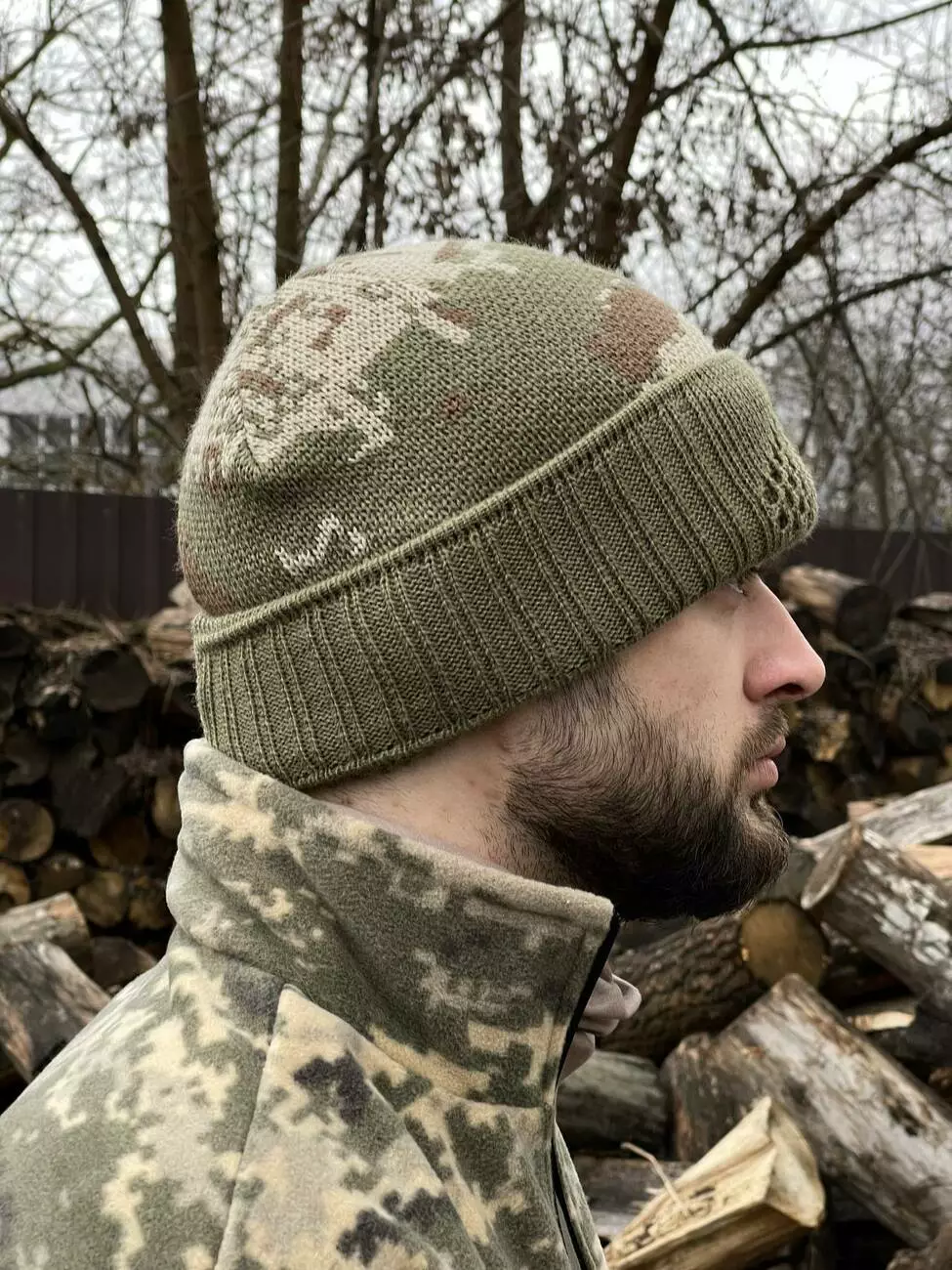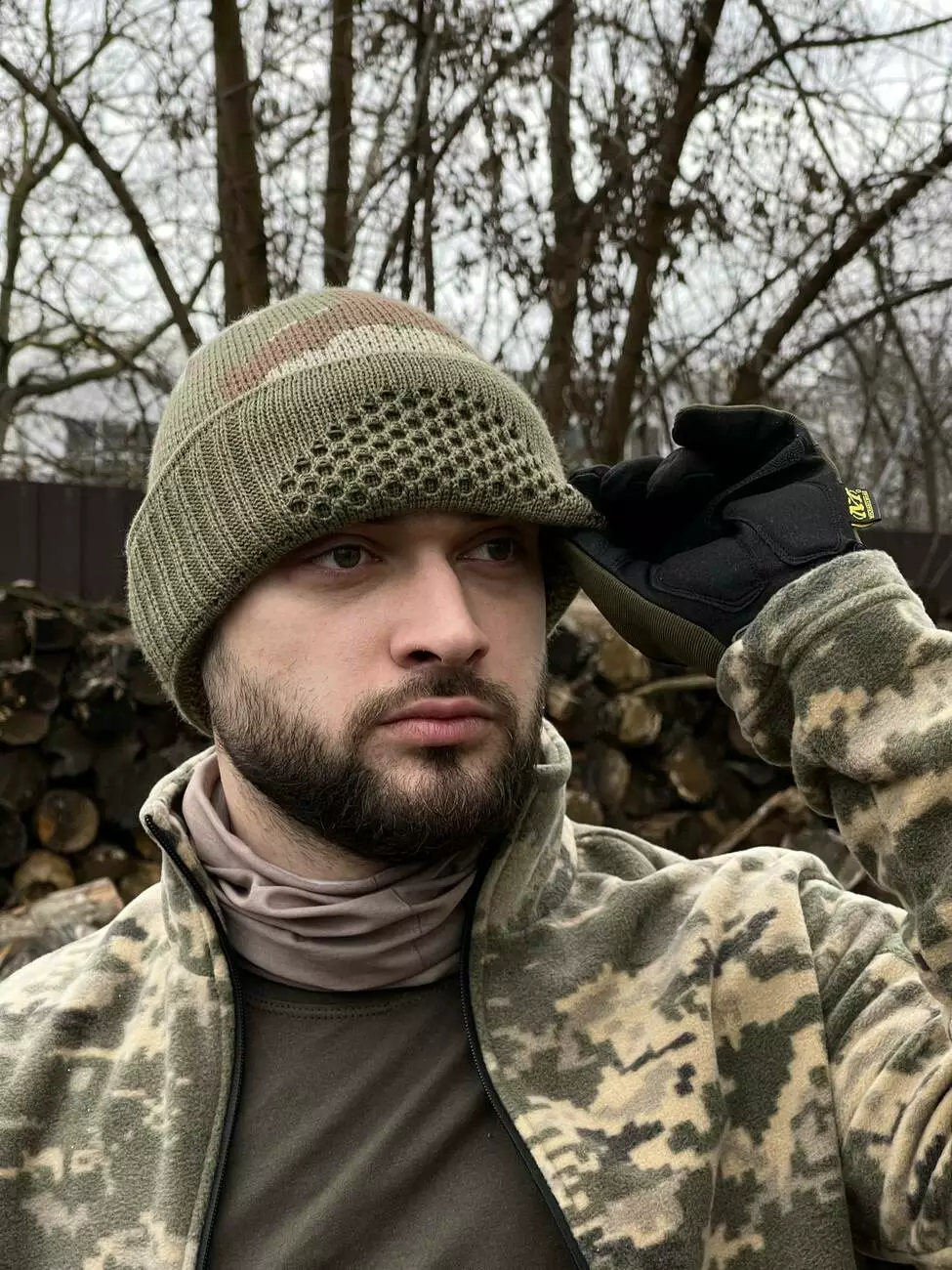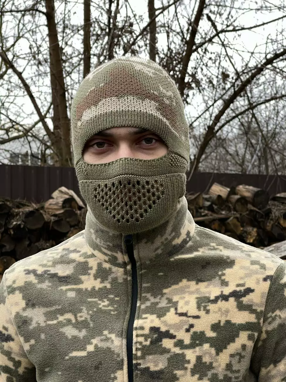 Балаклава-шапка оливковый пиксель с коричневым