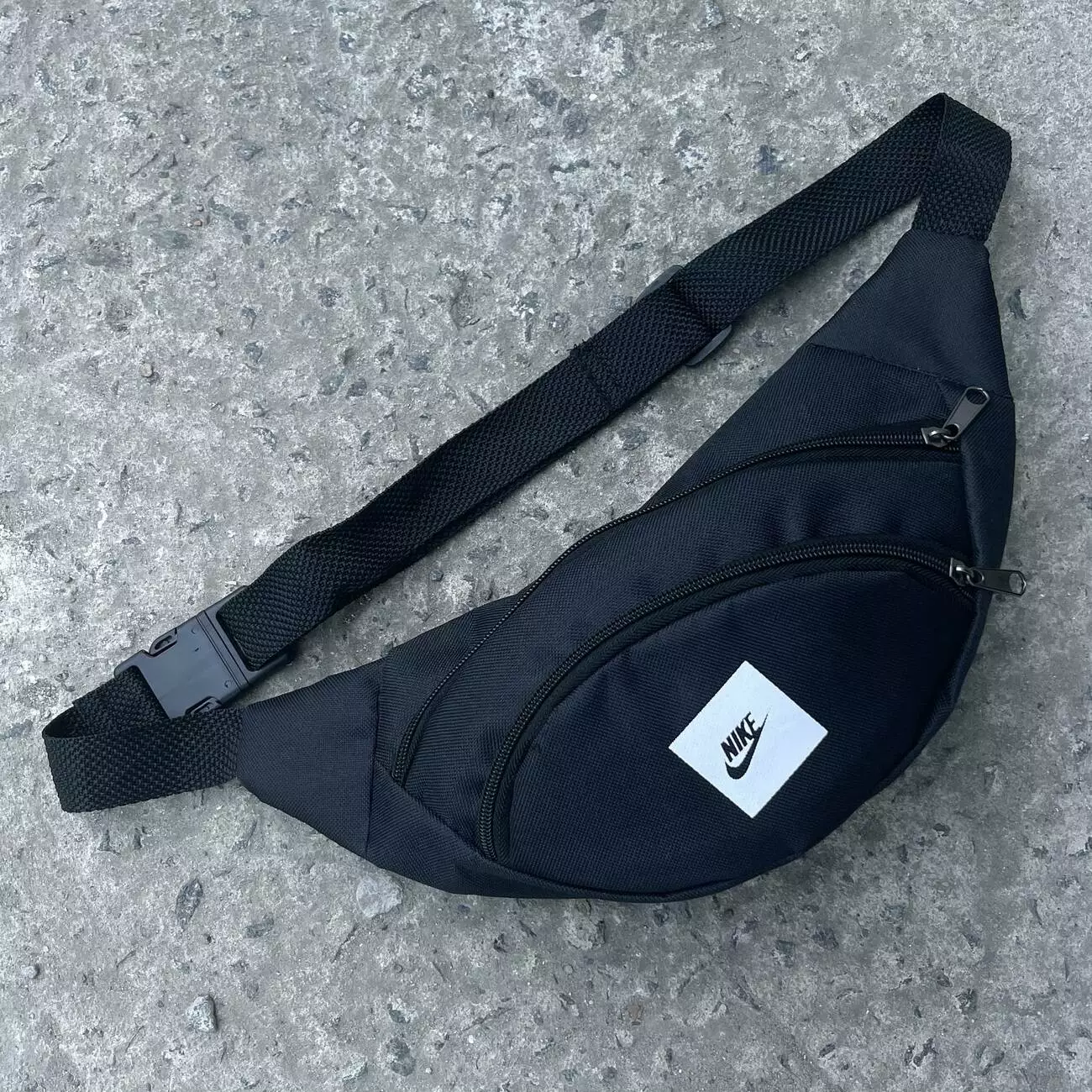 Бананка чорна Nike накатка із білим квадратом