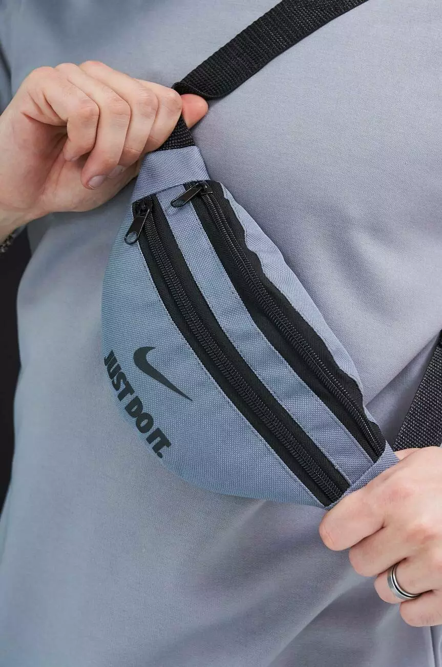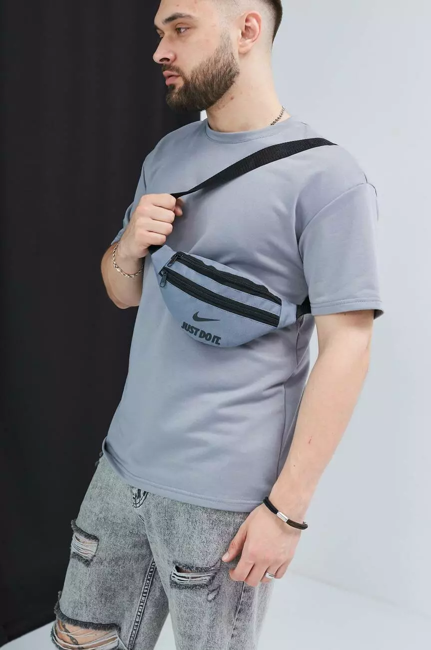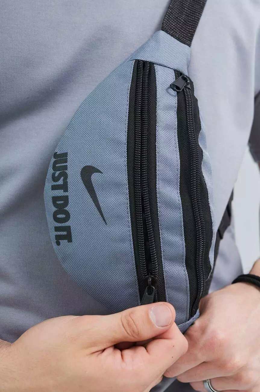 Бананка Nike just do it сіра, чорне лого (маленька)