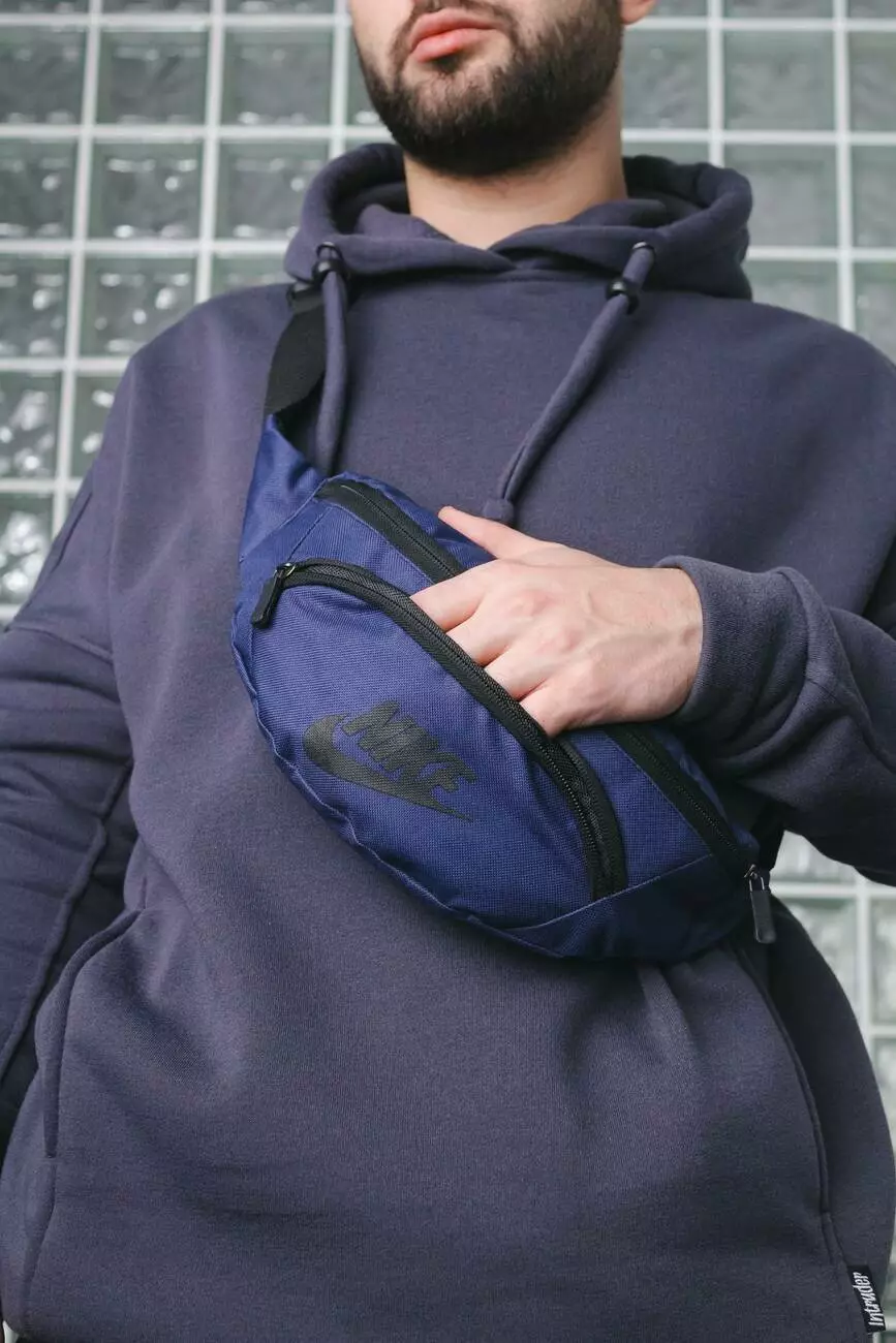 Бананка Nike синя, чорне лого