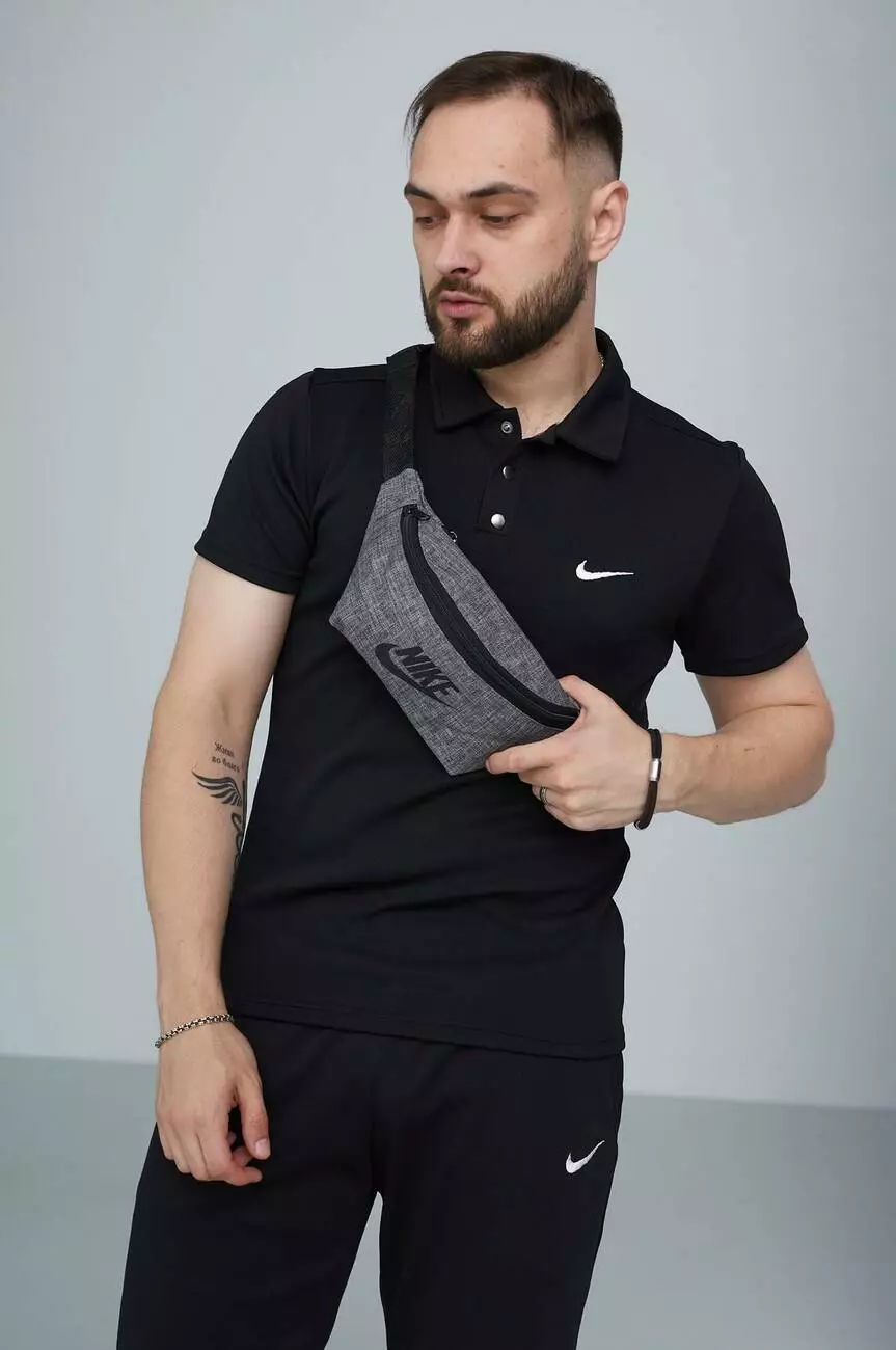 Бананка Nike світло-сірий меланж, чорне лого накатка