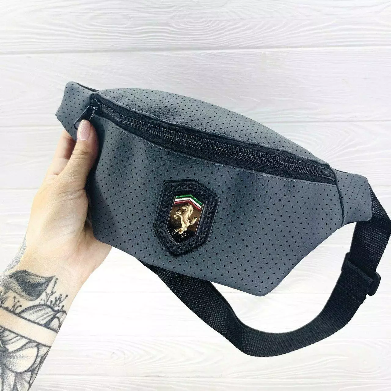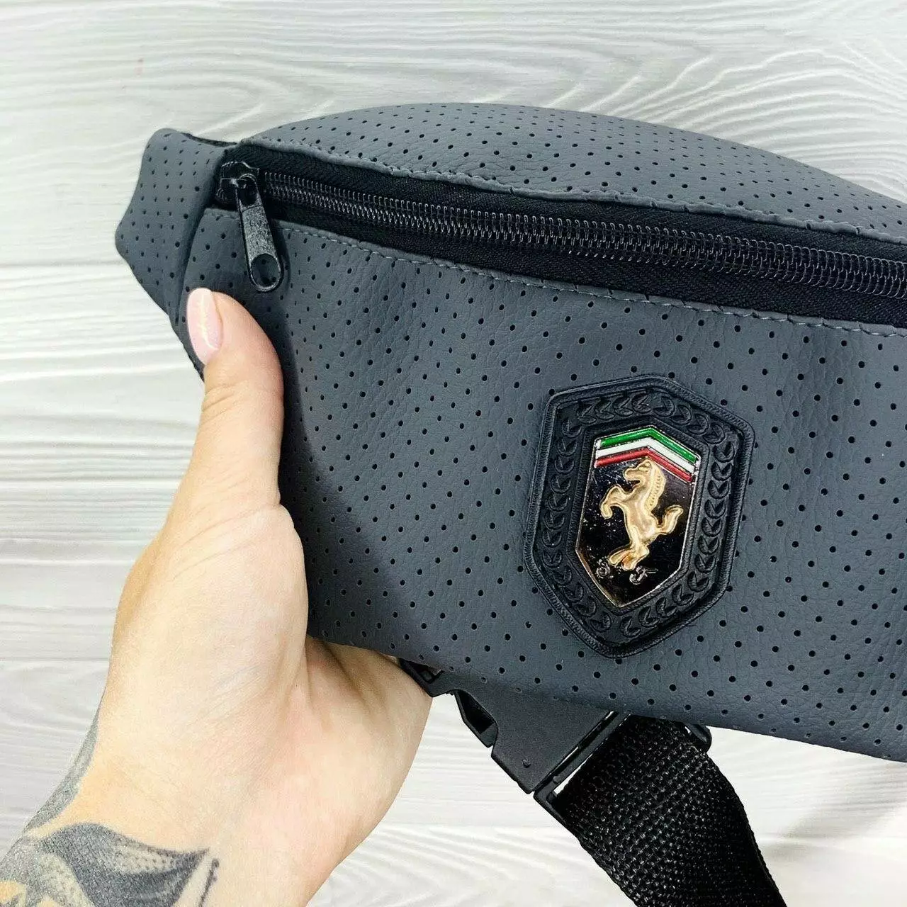 Бананка сіра перфорований шкірозамінник Ferrari