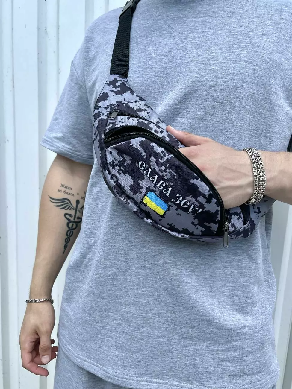 Бананка Слава ЗСУ! сірий піксель