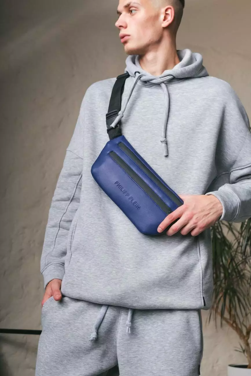 Бананка-сумка з шкірозамінника синя Philip Plein var2
