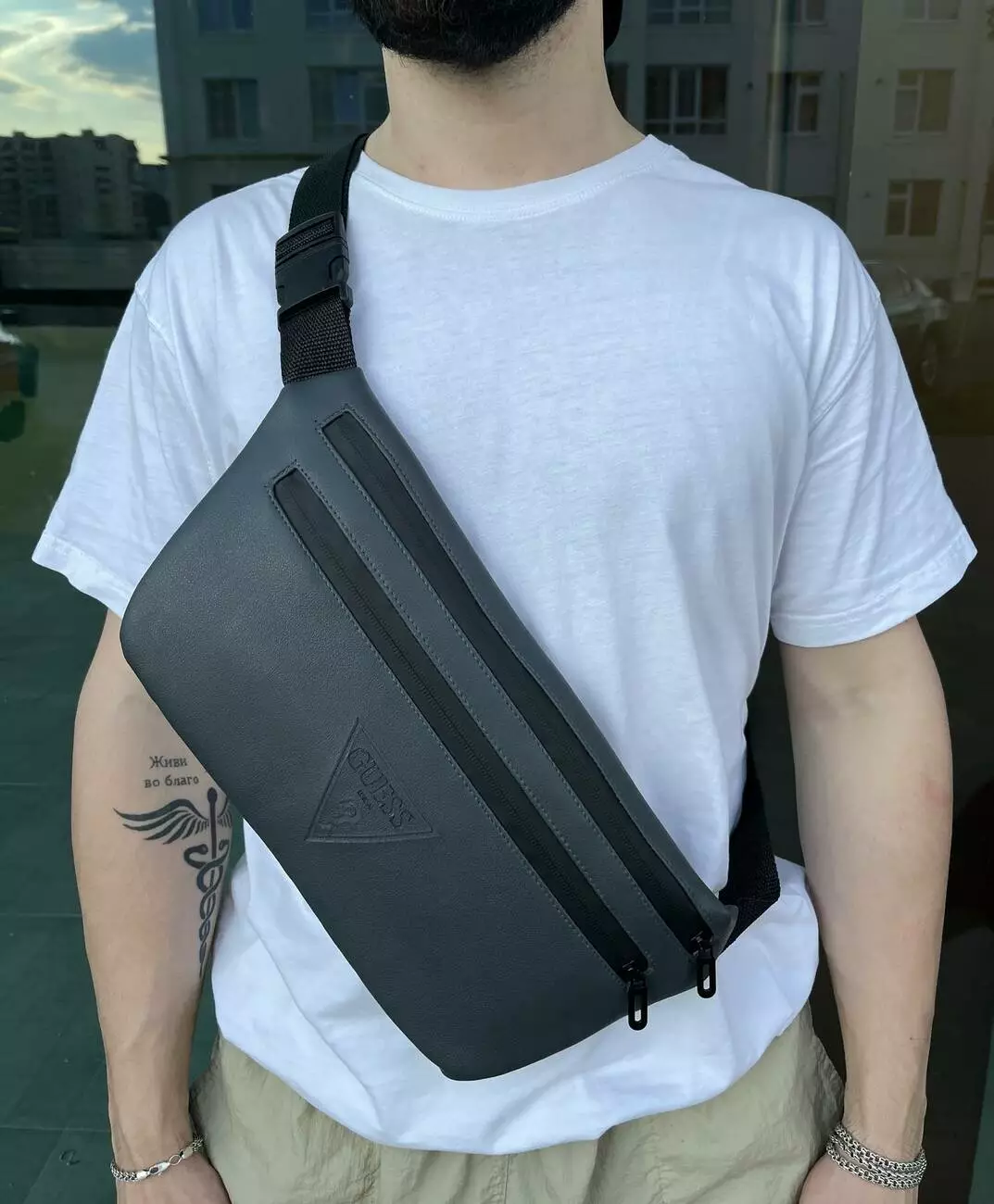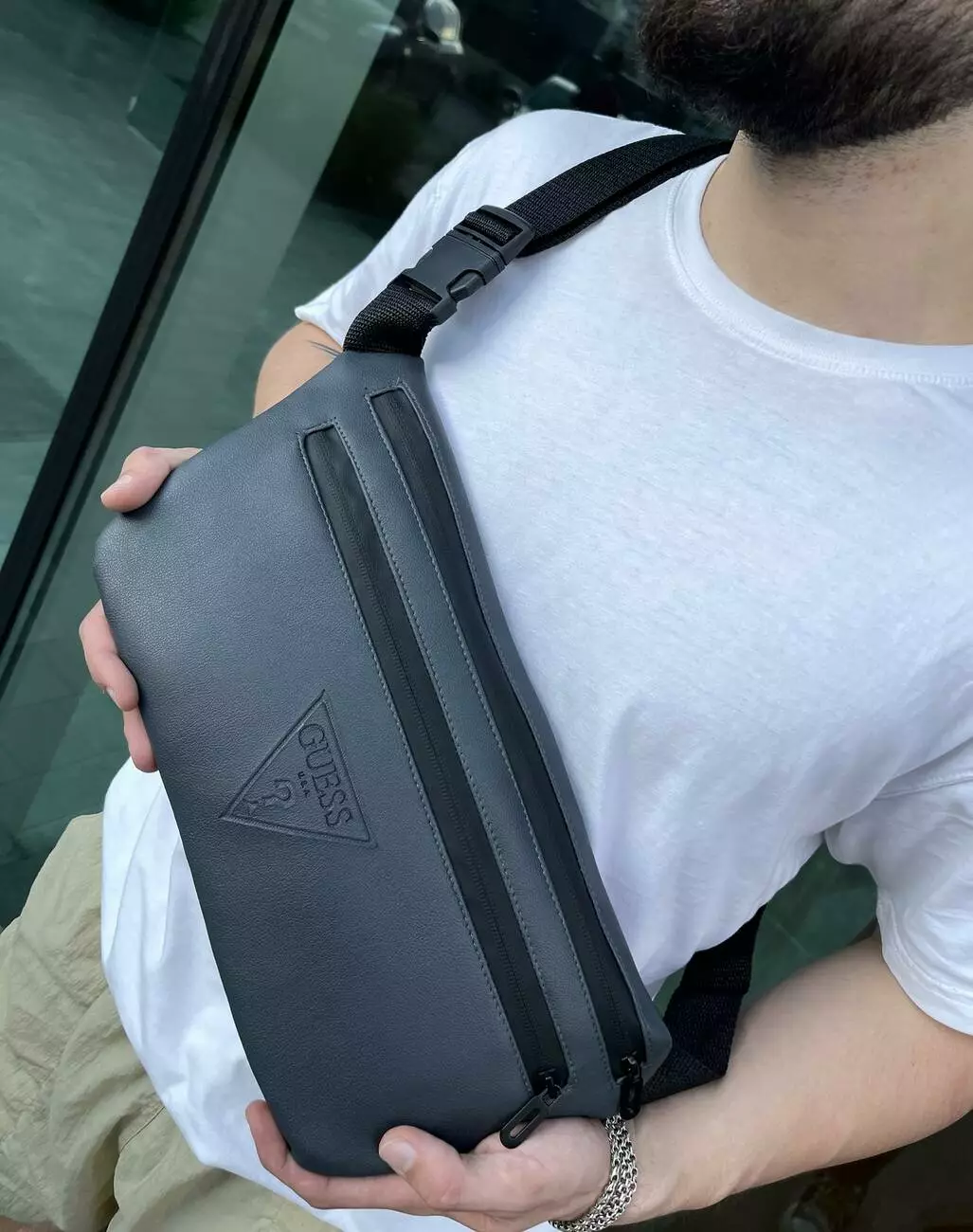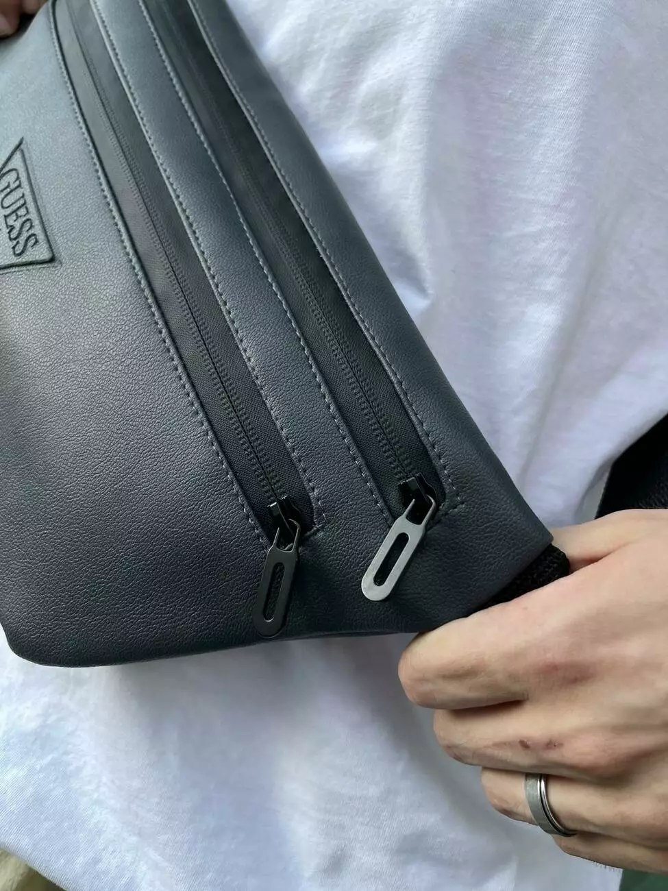 Бананка-сумка з шкірозамінника сіра Guess