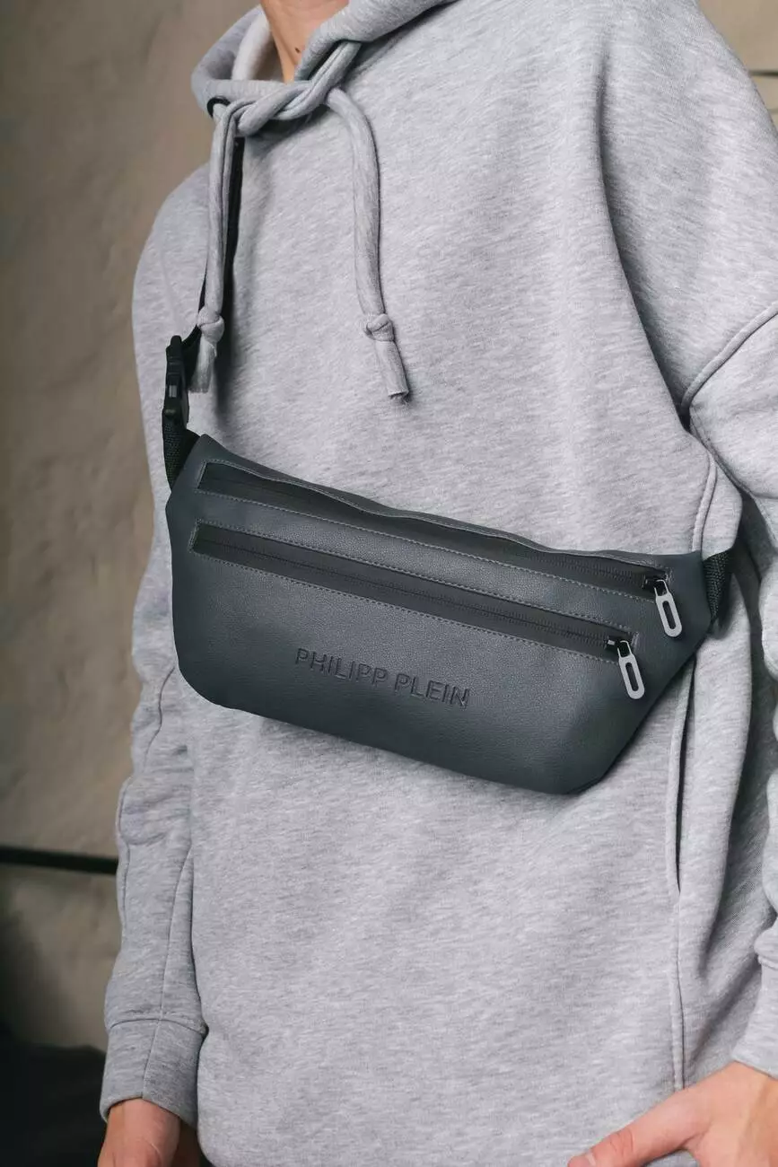 Бананка-сумка з шкірозамінника сіра Philipp Plein
