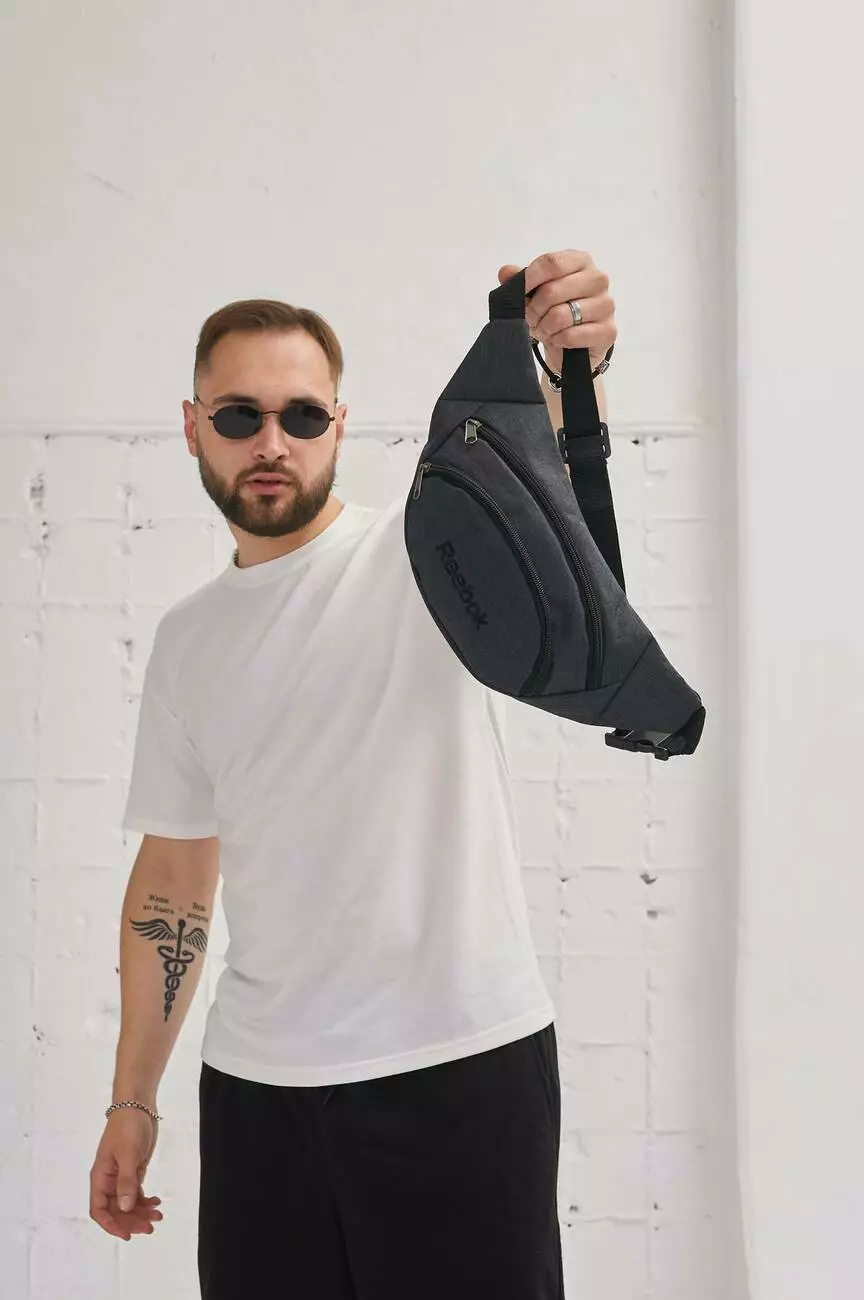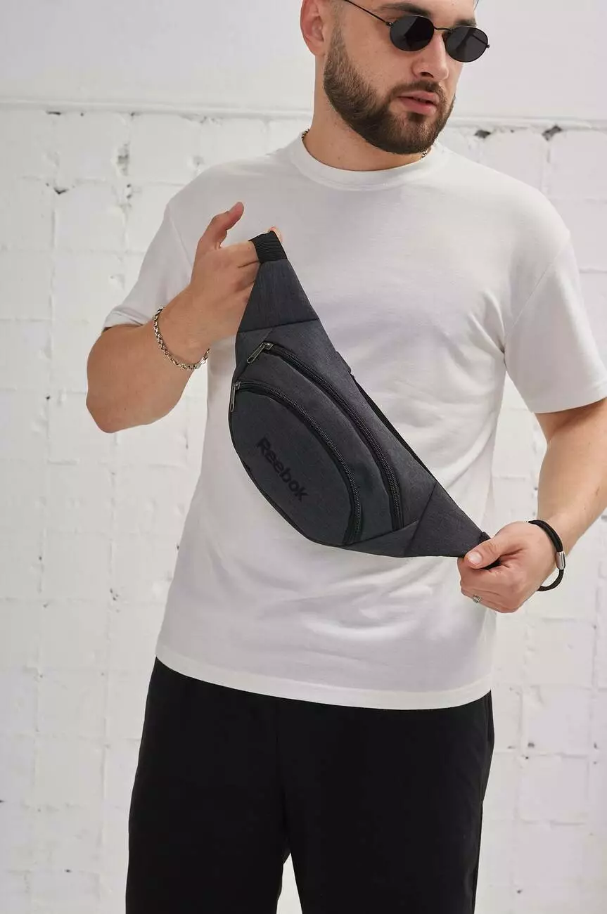 Бананка темно-сірий меланж Reebok (лого чорне)