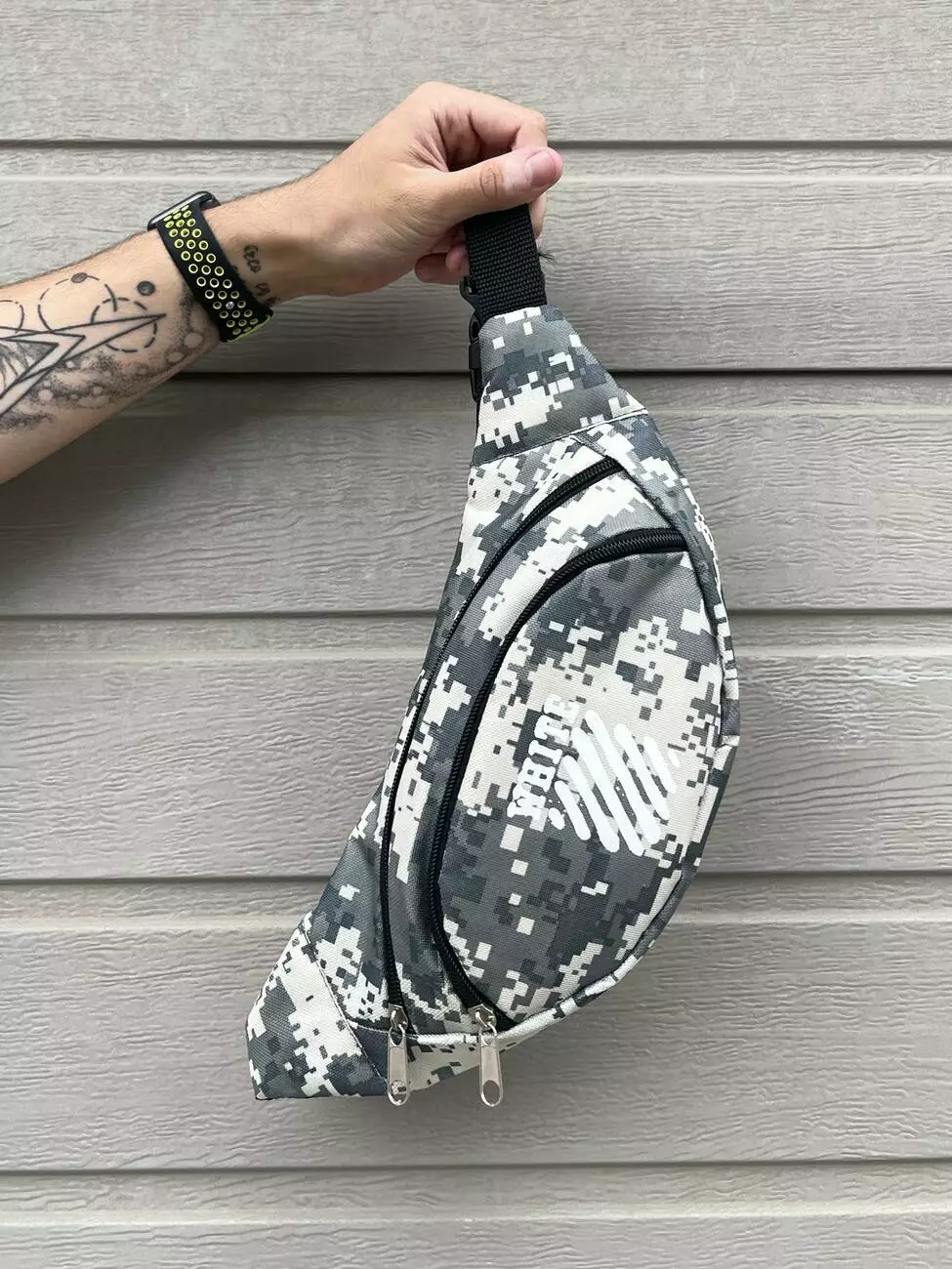 Бананка темно-сірий піксель off white_1
