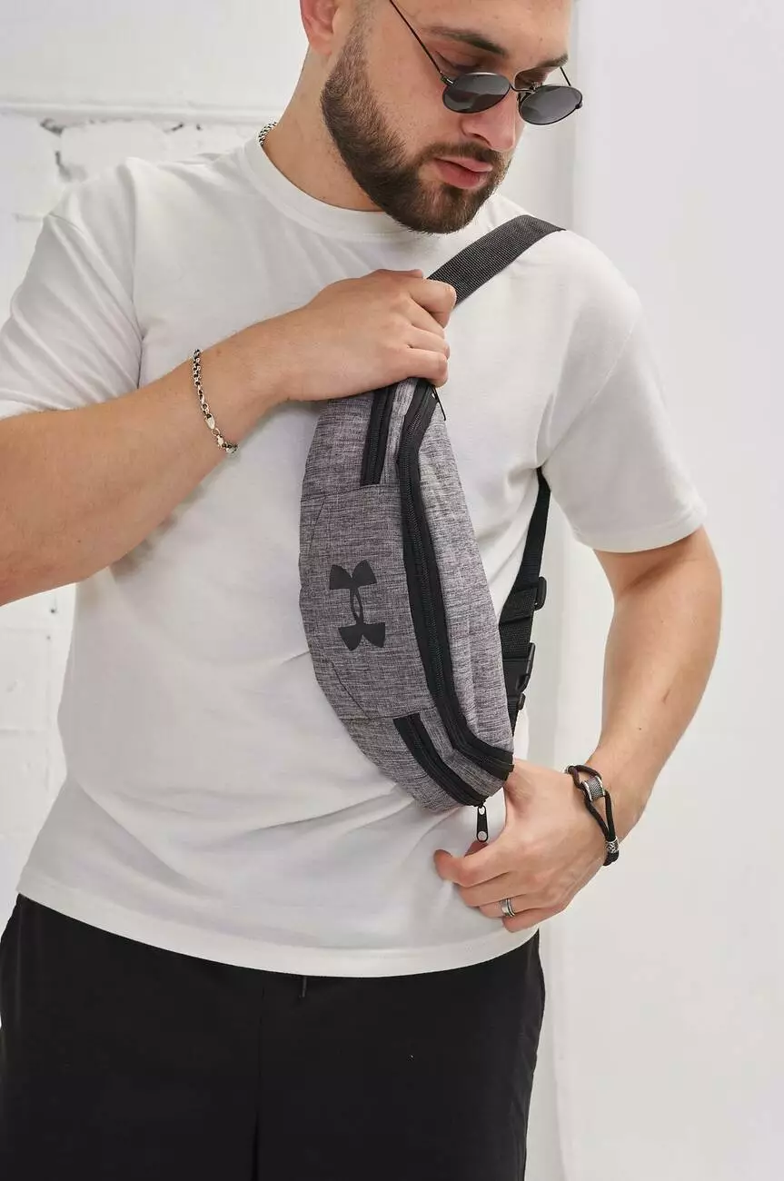 Бананка Under Armour сірий меланж, чорне лого