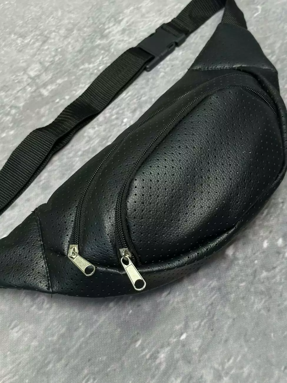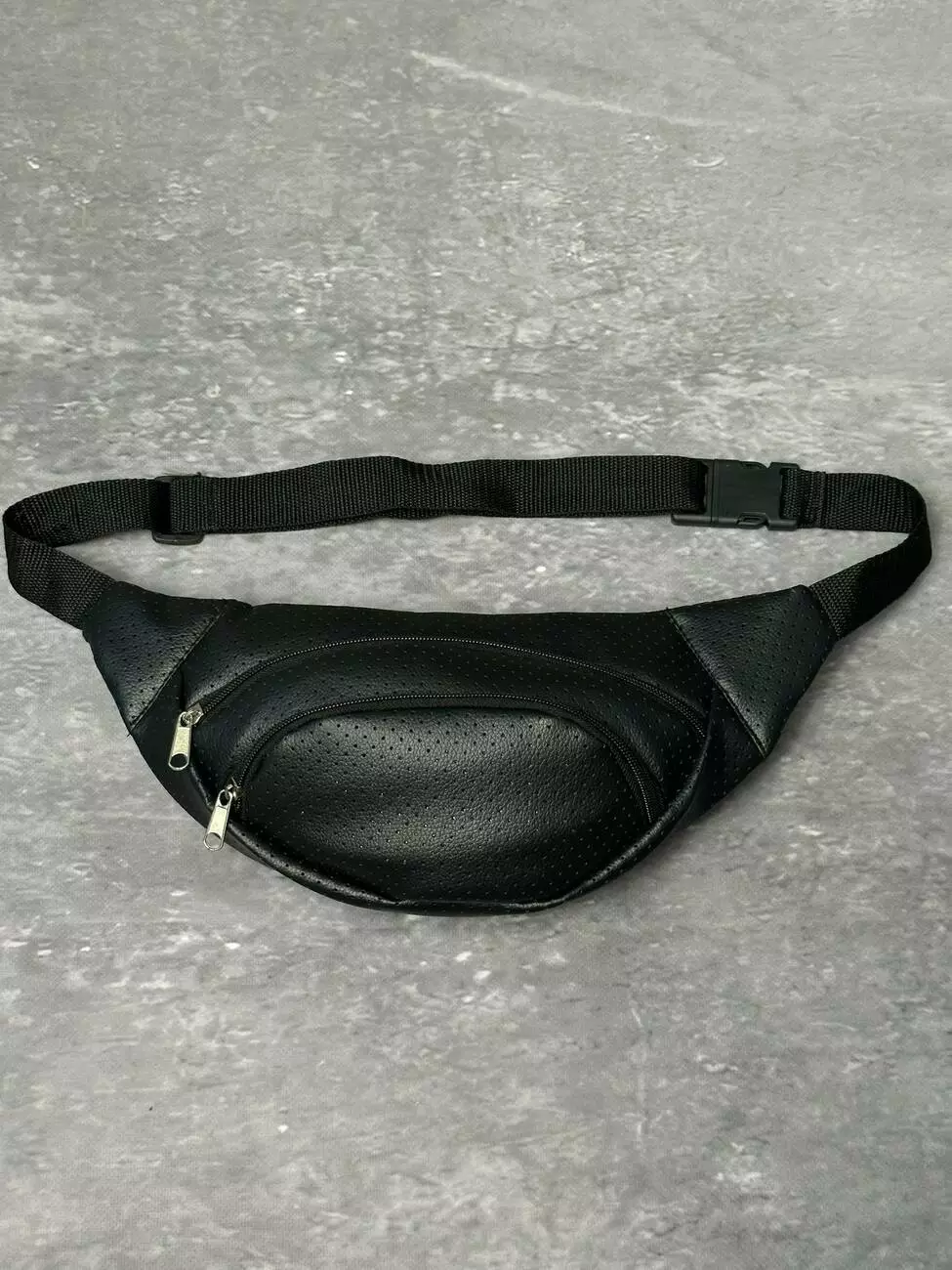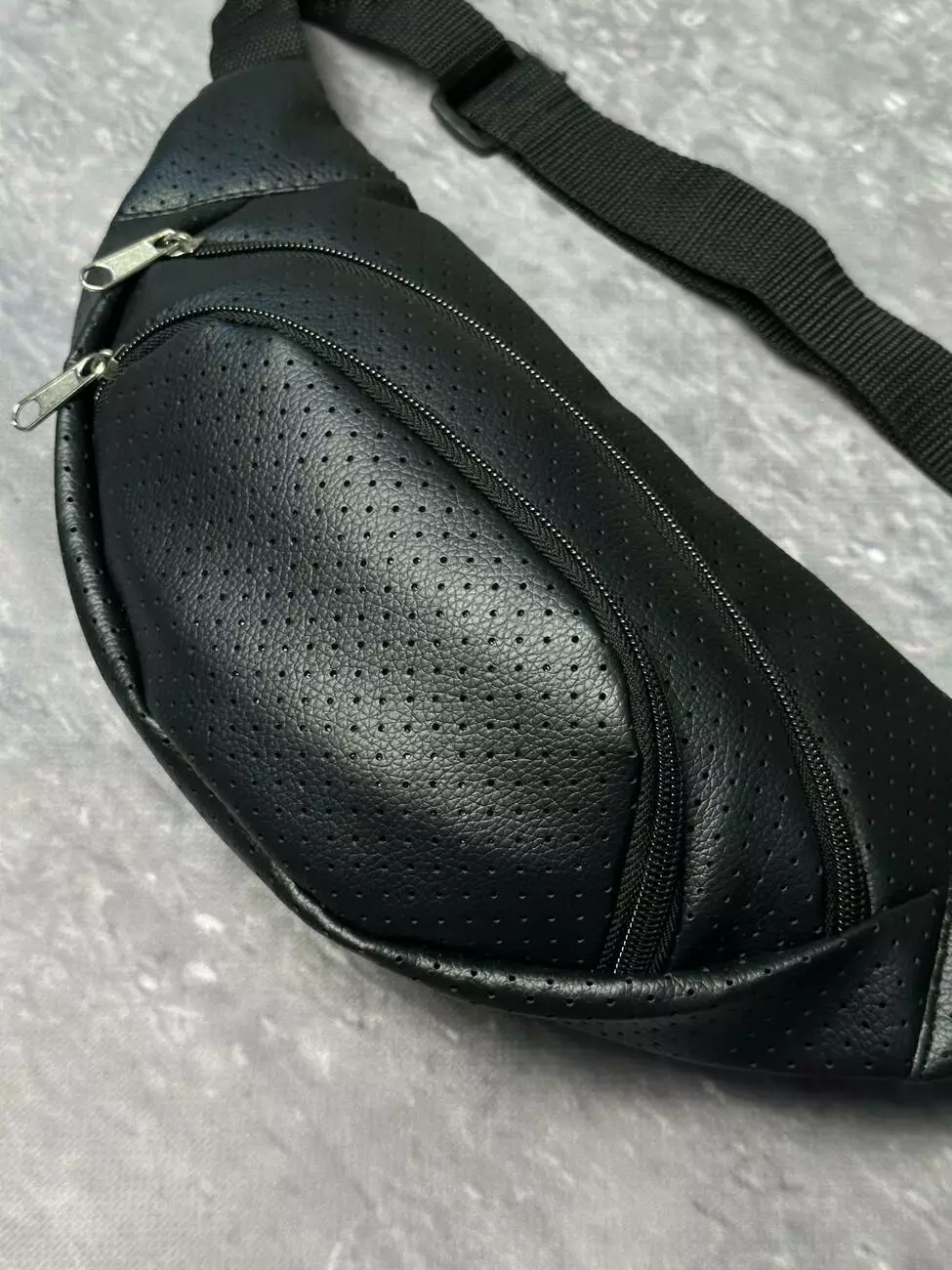 Бананка з перфор. шкірозамінника чорна без лого