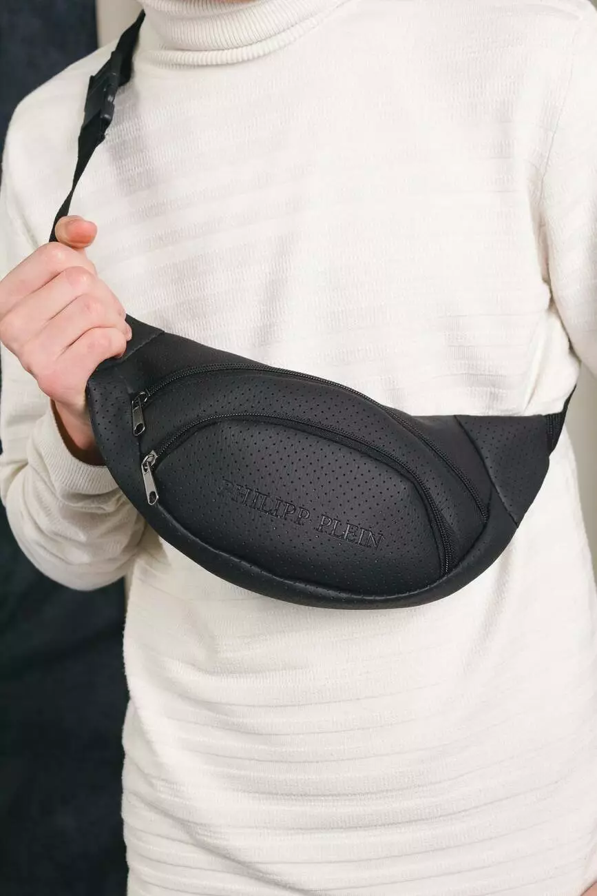 Бананка з перфор. шкірозамінника чорна Philipp Plein