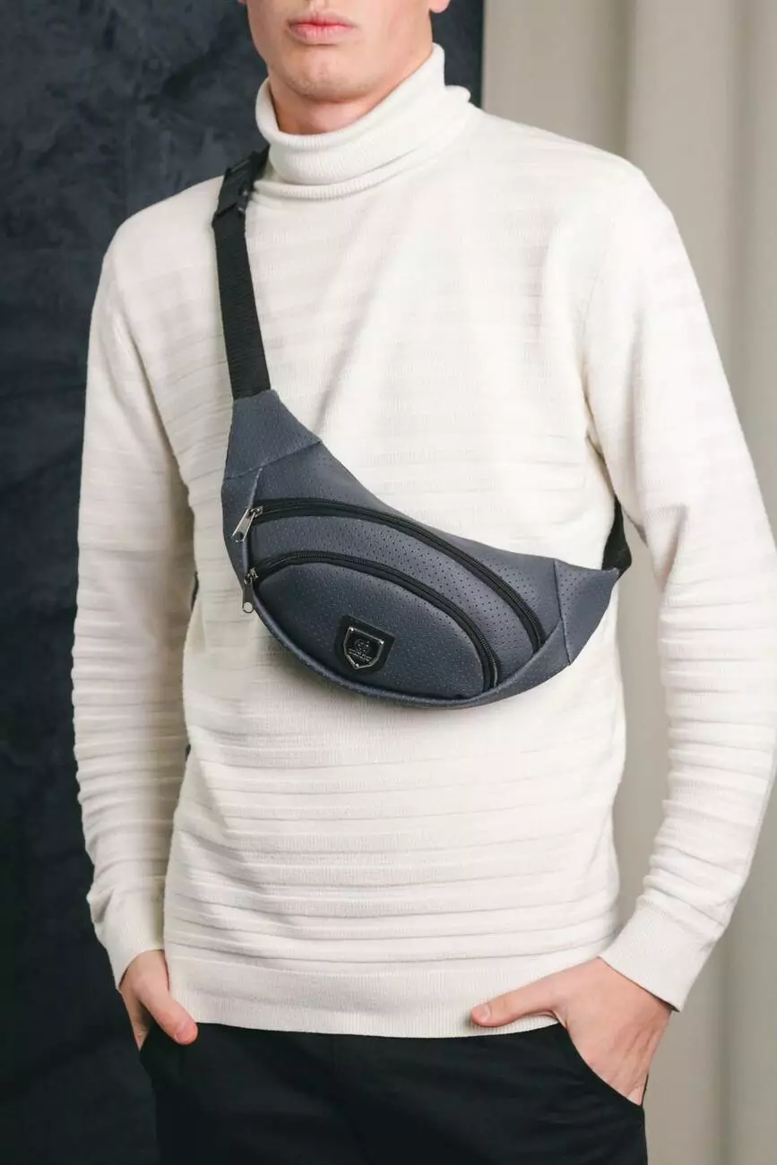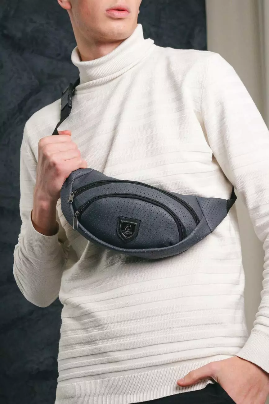 Бананка з перфор. шкірозамінника сіра Philipp Plein