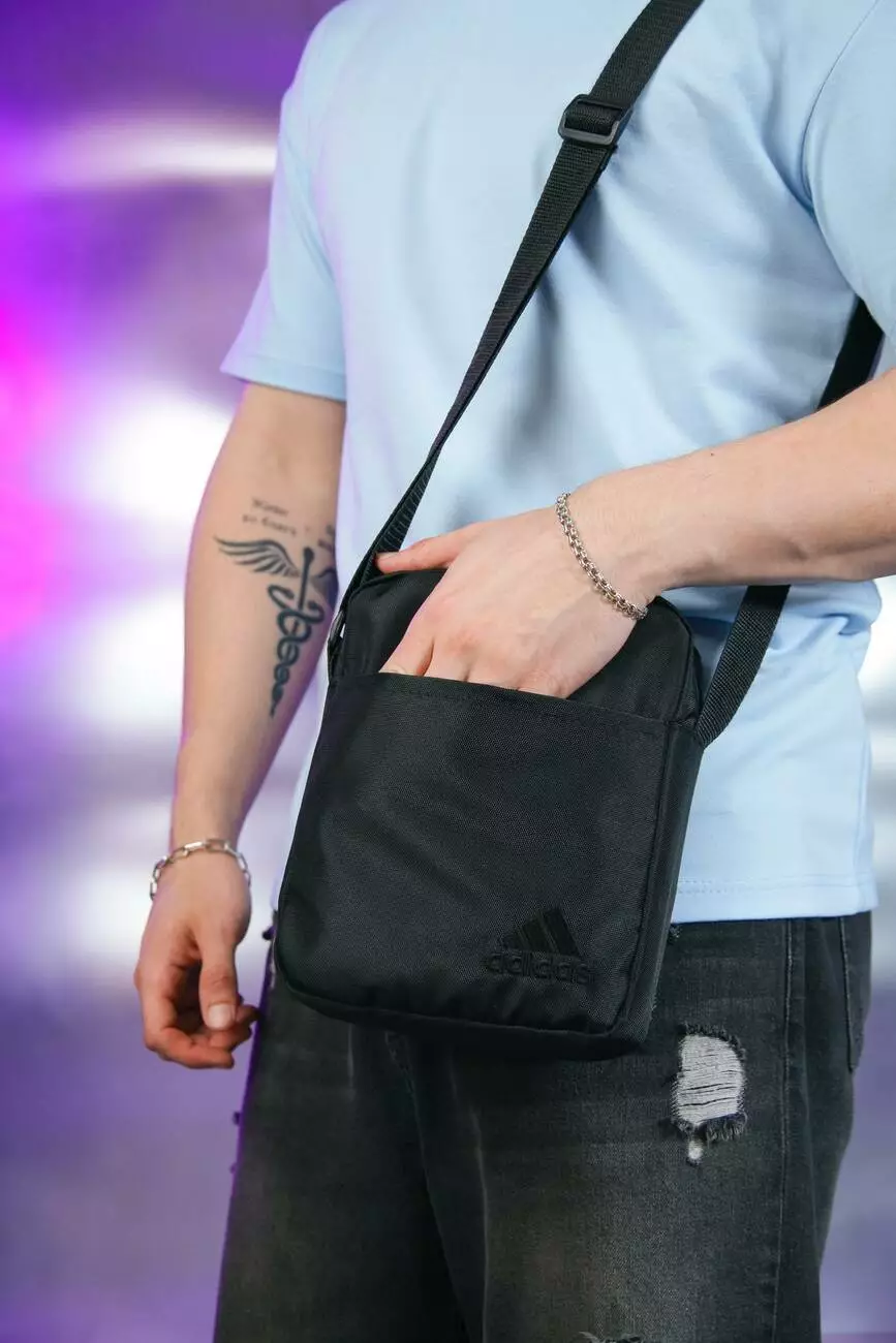 Барсетка Adidas 1000d чорна, чорне лого