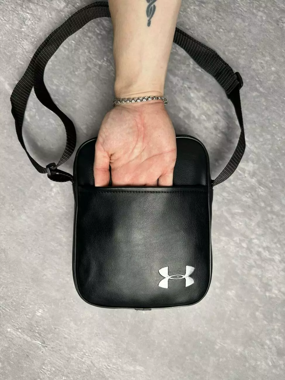 Барсетка шкір. чорна Under Armour біле лого