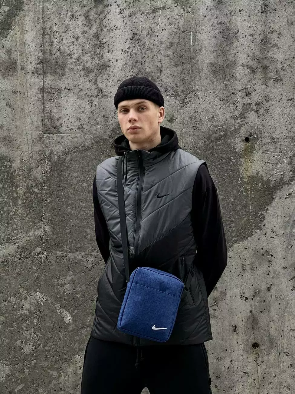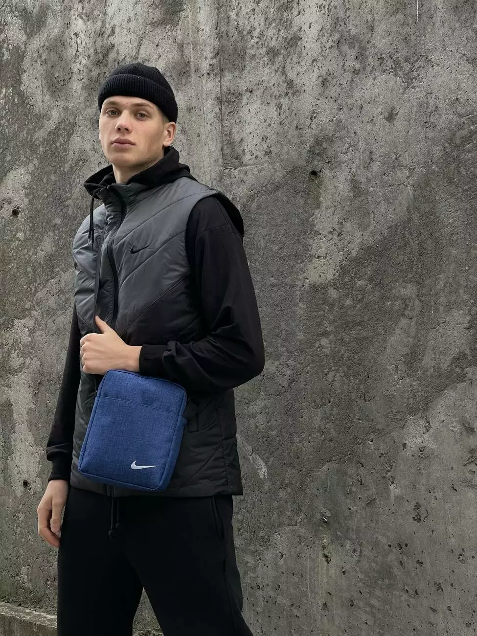 Барсетка синій меланж Nike з білим логотипом