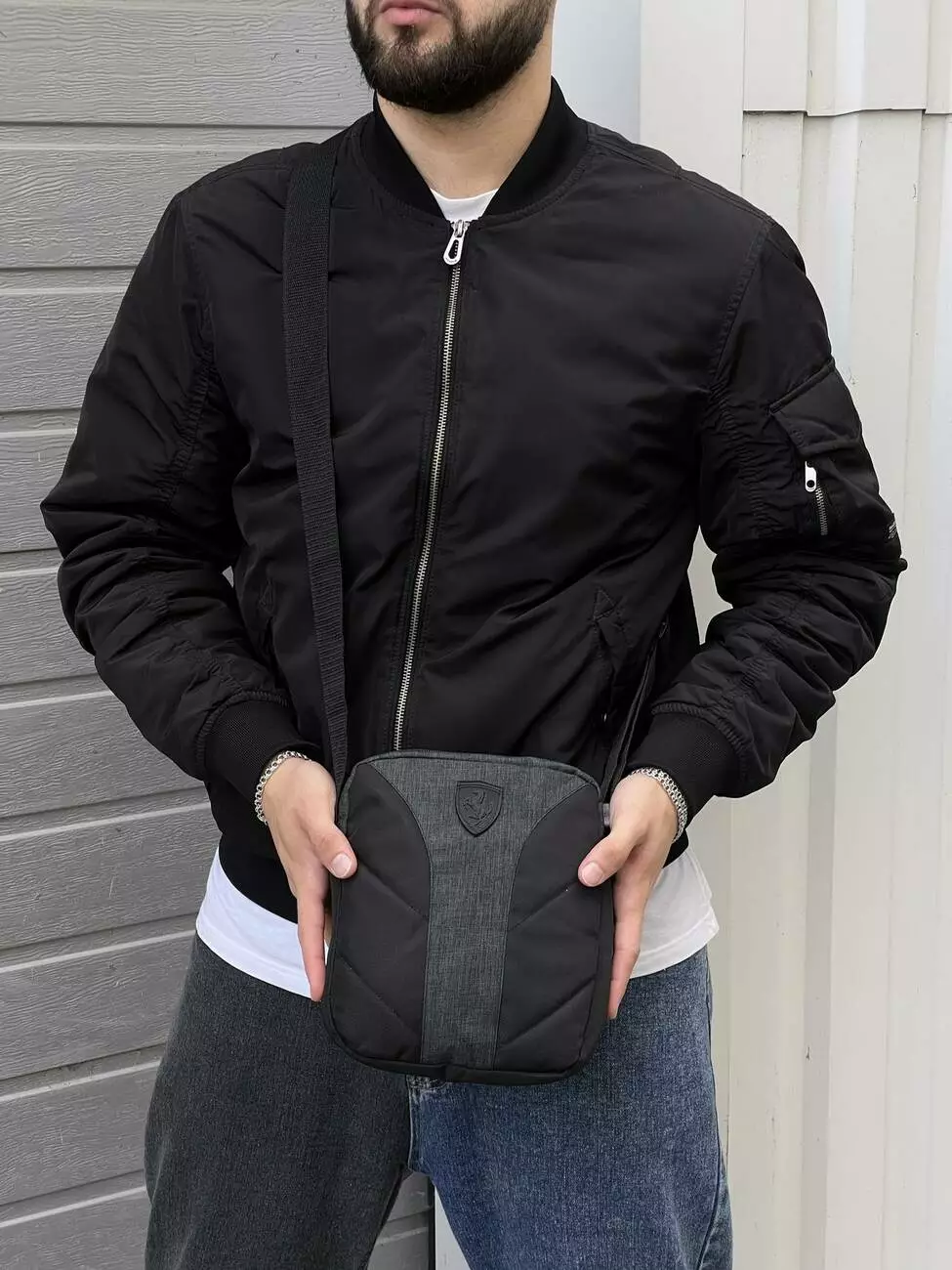 Барсетка темно-сірий меланж із чорним Ferrari