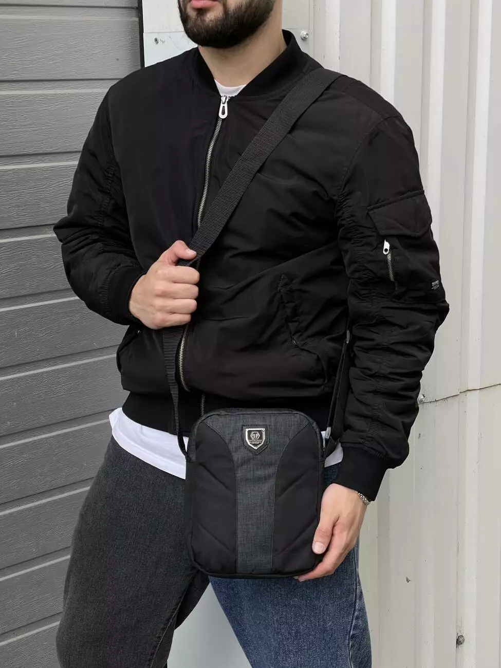 Барсетка темно-сірий меланж із чорним Philipp Plein