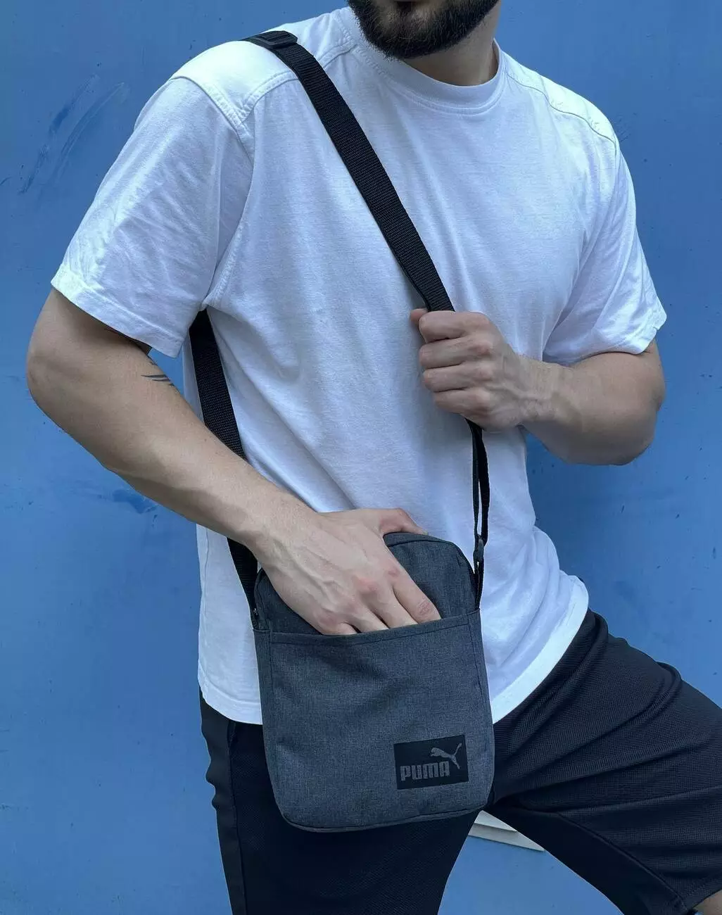 Барсетка темно-сірий меланж Puma (чорн. лого)