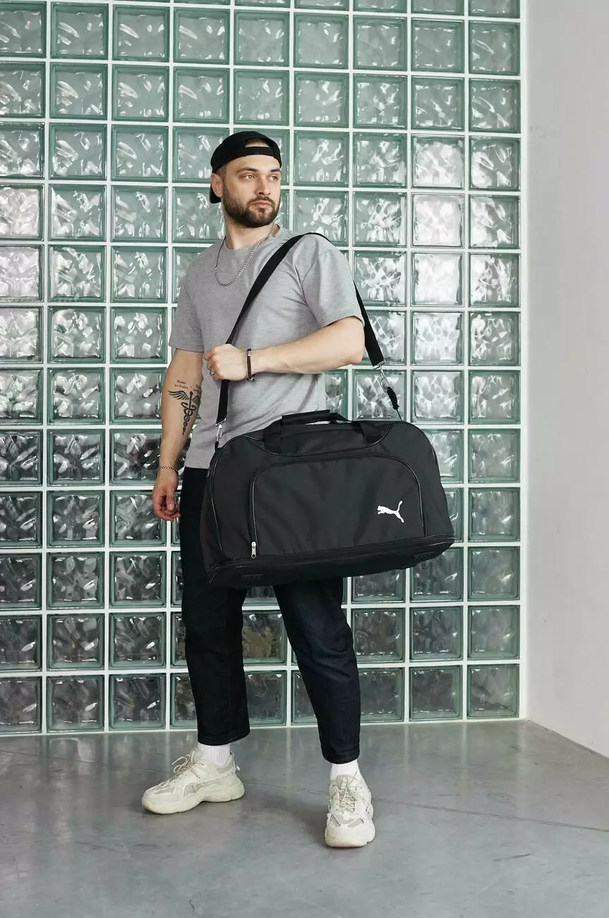 Дорожня сумка Puma чорна, біле лого (мал.)