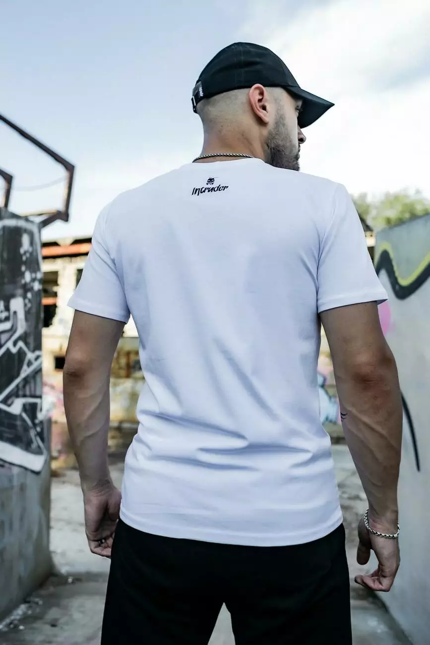 Класична однотонна футболка на кожен день із фірмовим принтом. Має зручну посадку. Спереду по центру накатаний великий принт c лого і написом Intruder + ззаду зверху є невеликий принт з написом Intruder. Під час пошиття використані високоякісні тканини турецького виробництва.