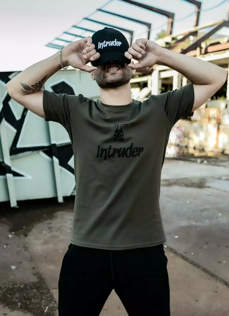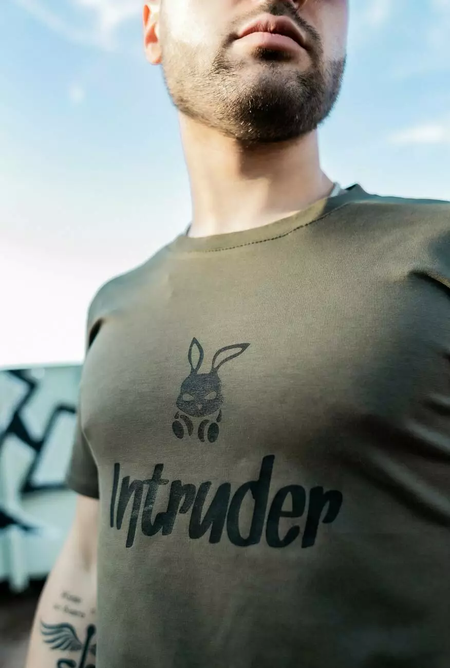 Класична однотонна футболка на кожен день із фірмовим принтом. Має зручну посадку. Спереду по центру накатаний великий принт c лого і написом Intruder + ззаду зверху є невеликий принт з написом Intruder. Під час пошиття використані високоякісні тканини турецького виробництва.