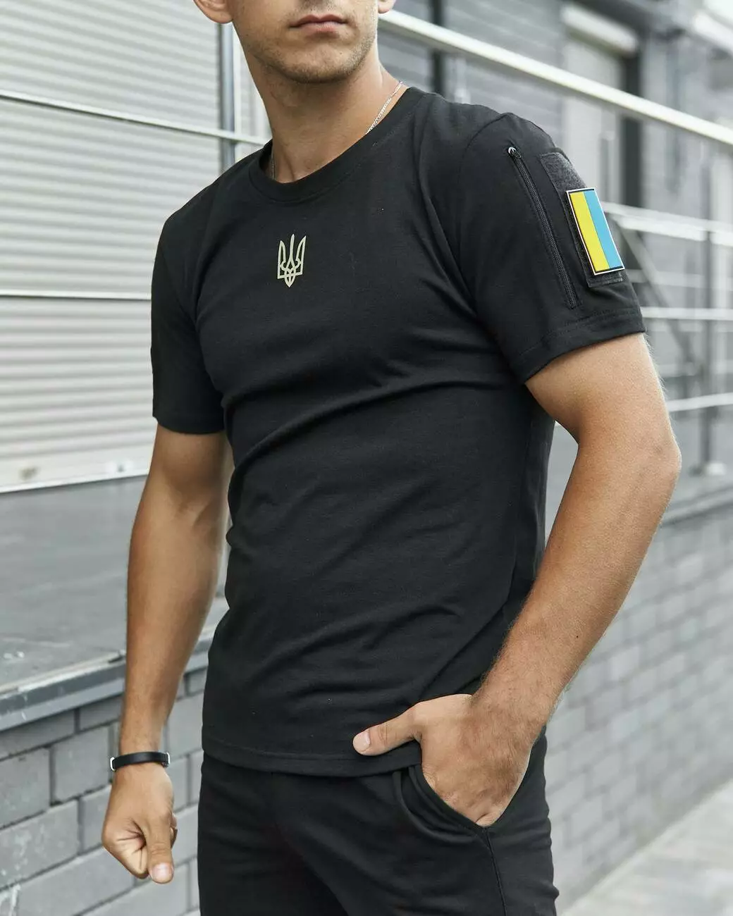 Футболка чоловіча з липучками та змійкою "Тризуб" Intruder чорна