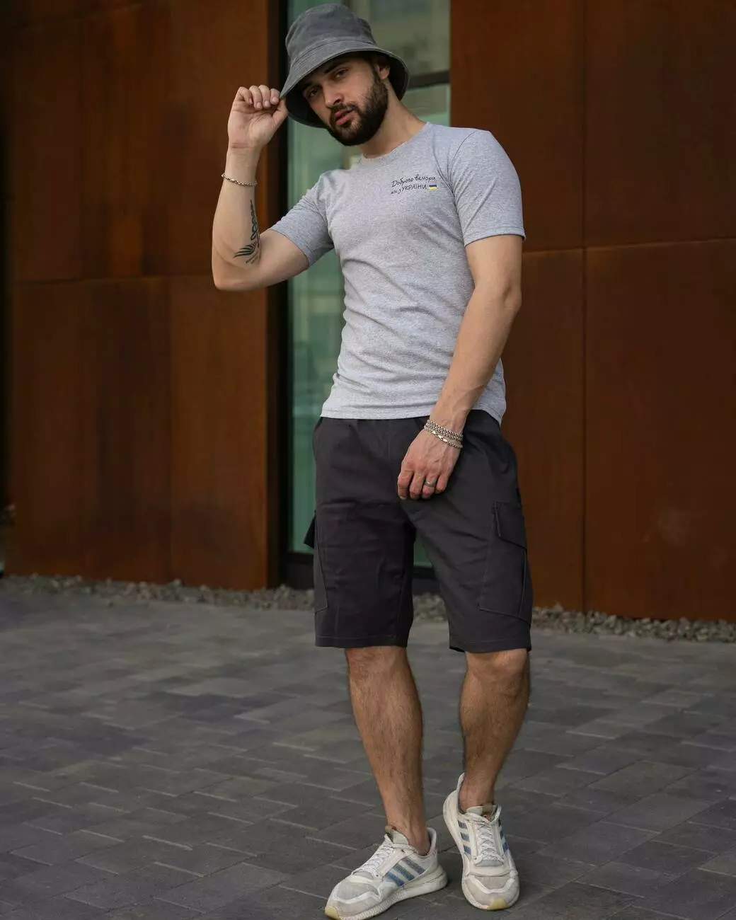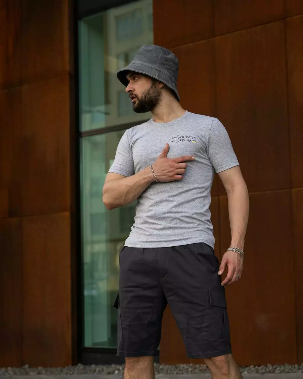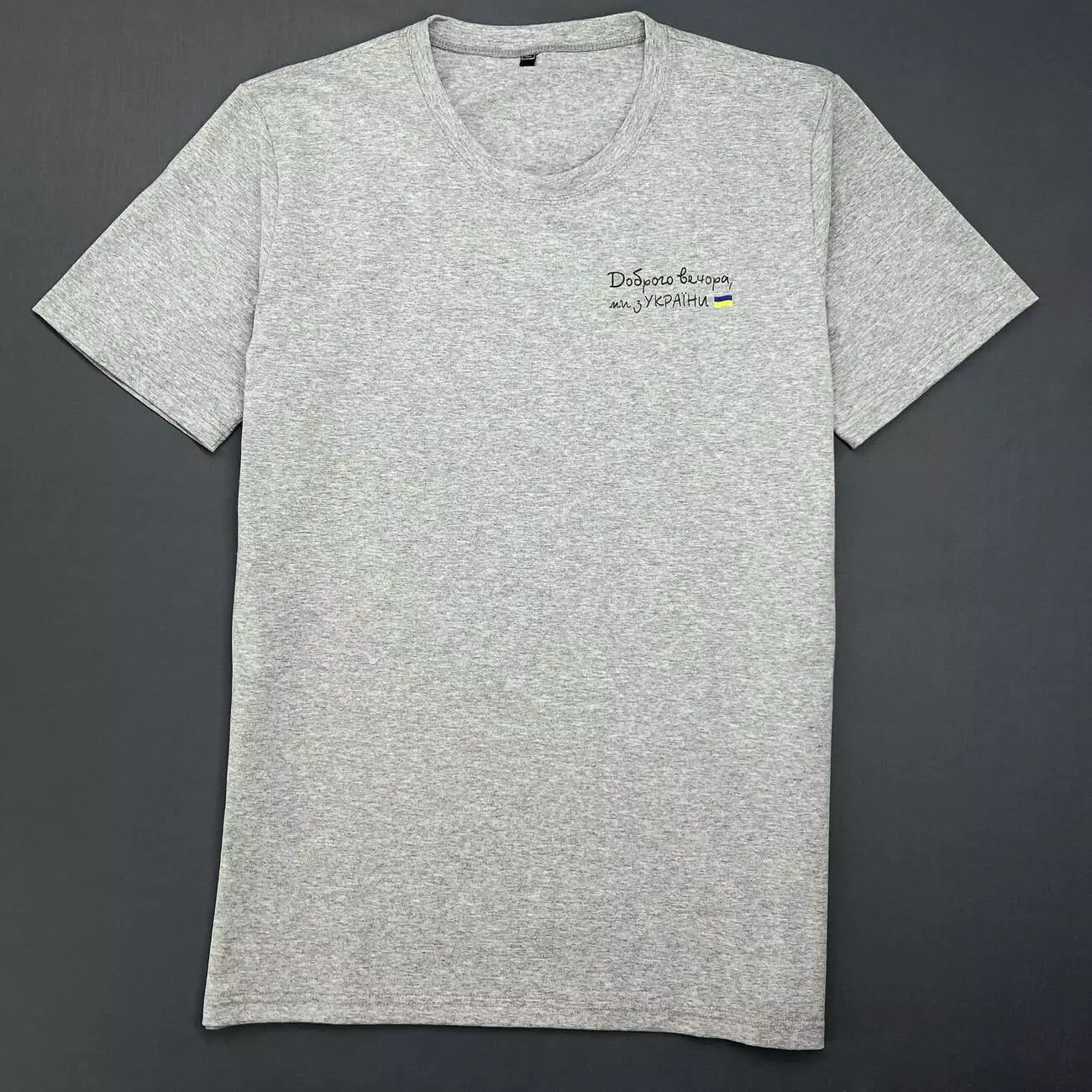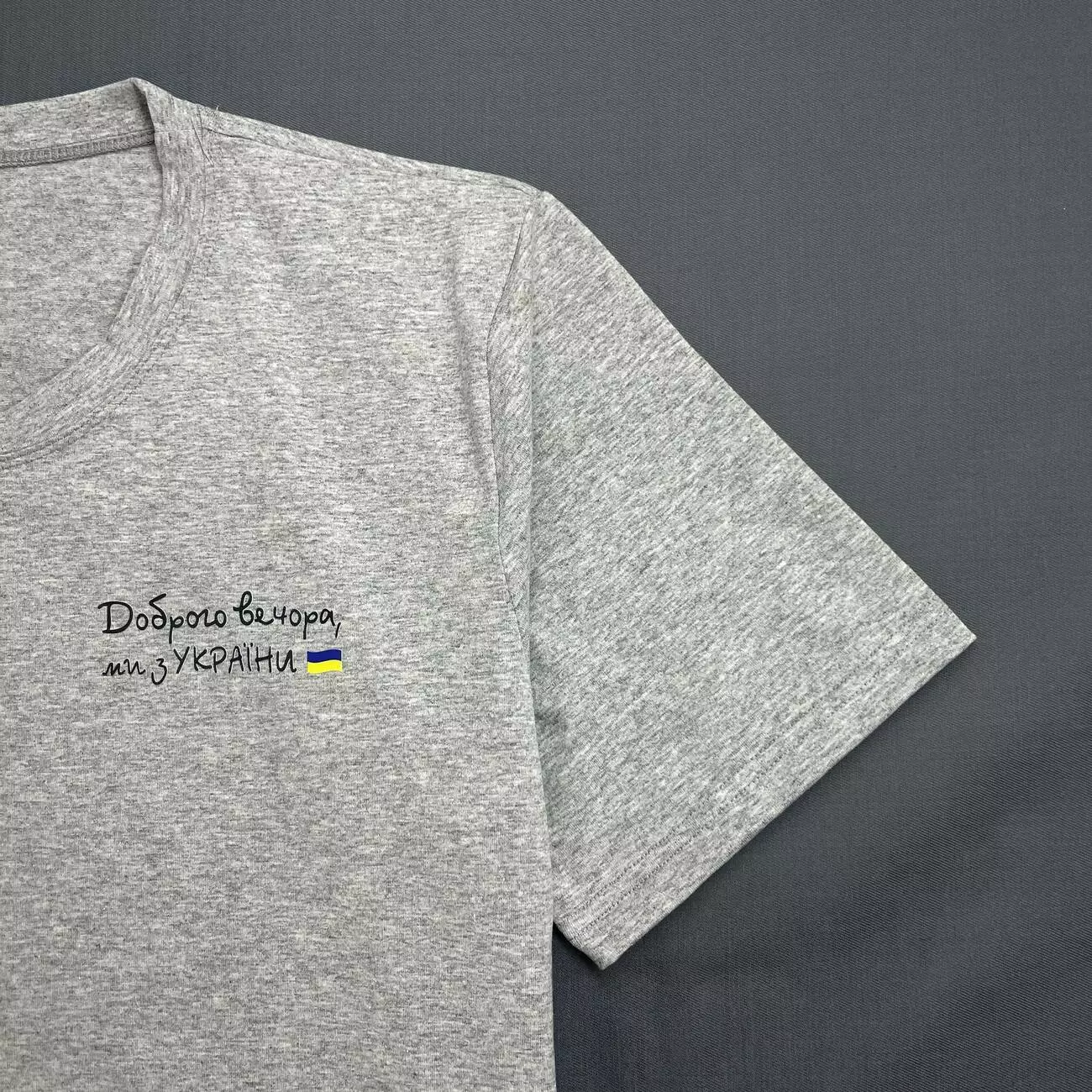 Футболка чоловіча з маленьким принтом "Доброго Вечора ми з України" Intruder сіра