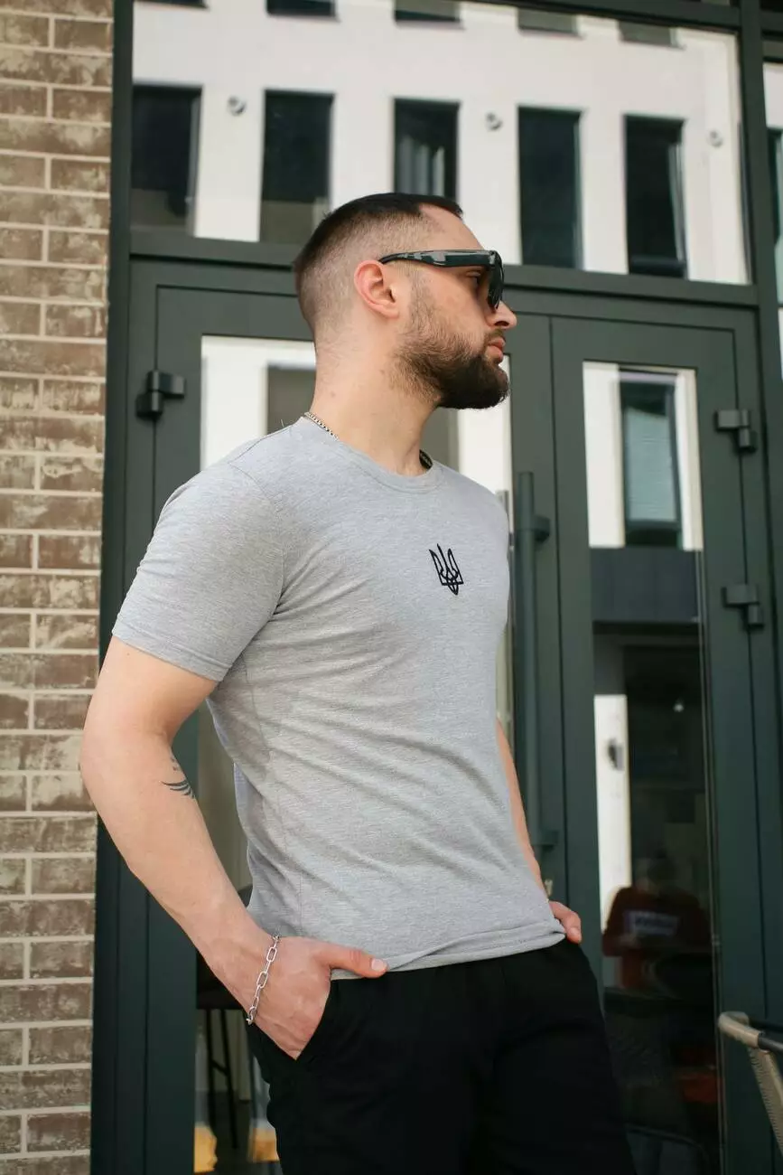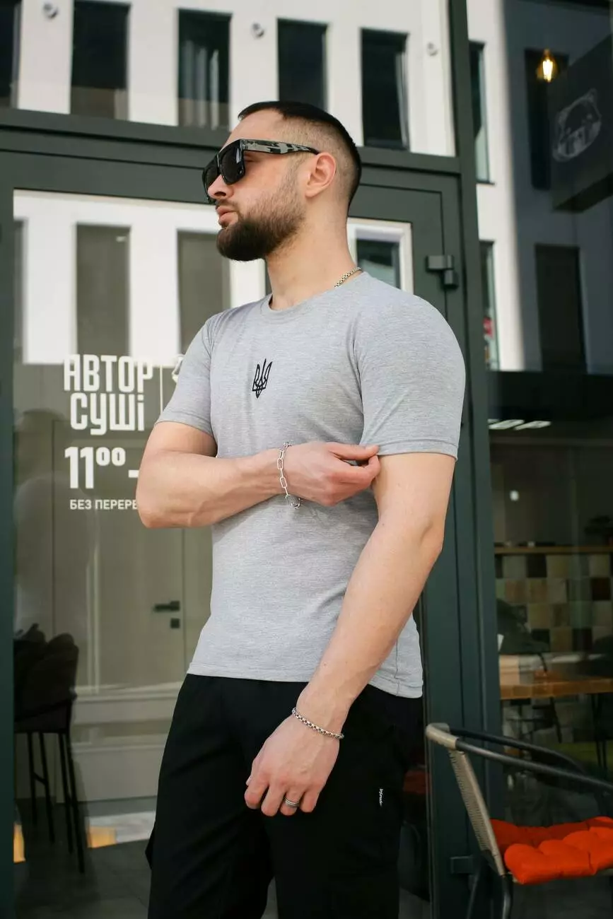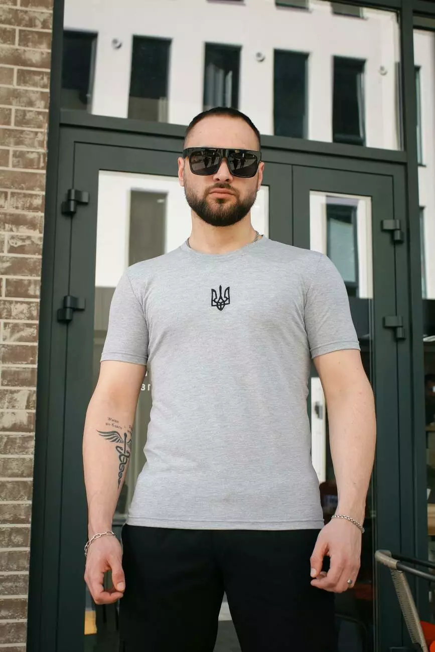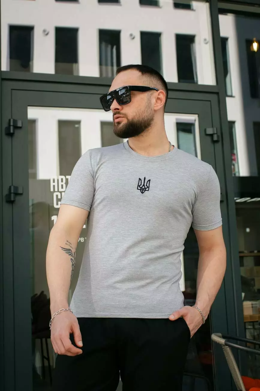 Футболка чоловіча з вишивкою "Тризуб" Intruder сірий меланж