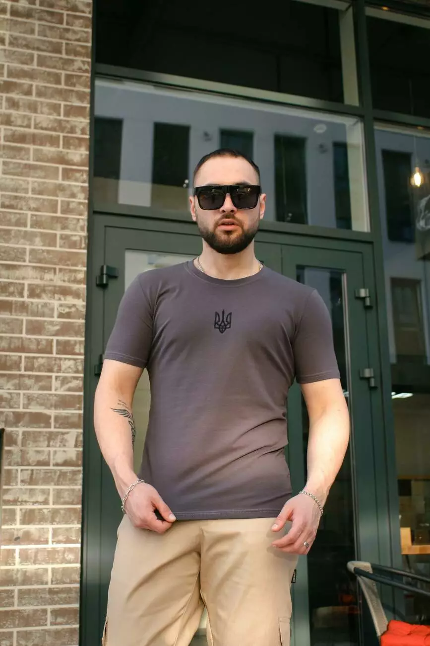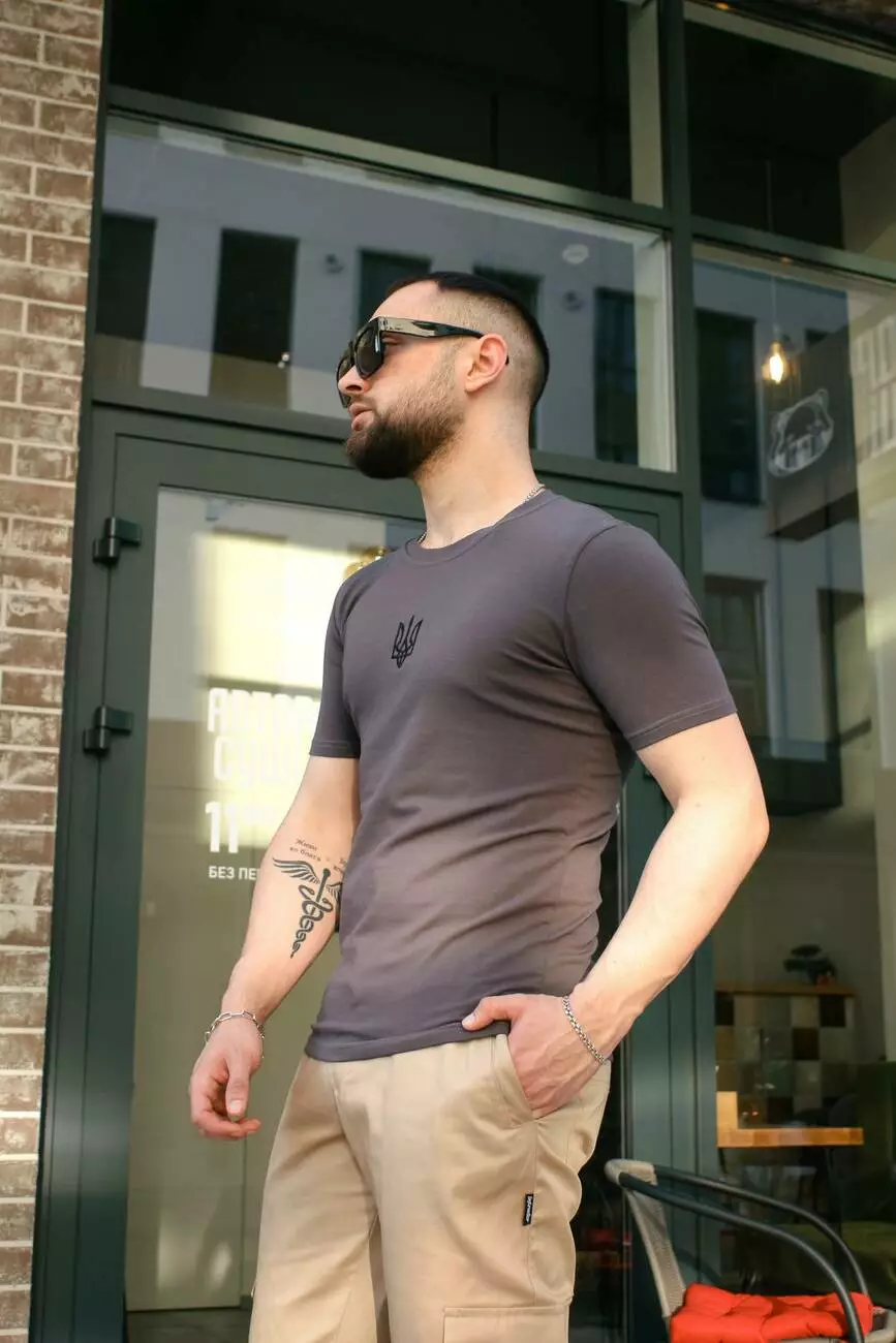 Футболка чоловіча з вишивкою "Тризуб" Intruder темно-сіра