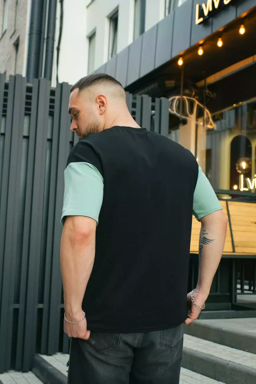 - Рукав подовжений, зроблений із комбінованої тканини.