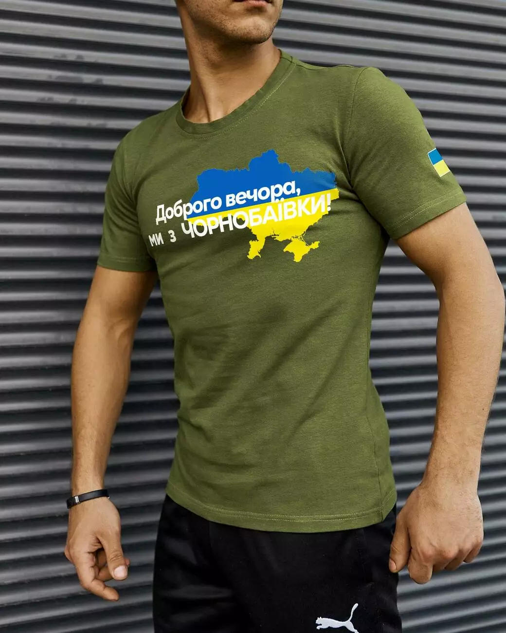 Футболка хакі з принтом "Доброго вечора ми з Чорнобаївки"