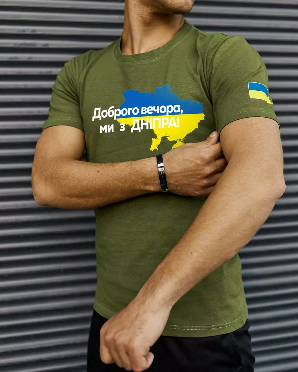 Футболка хакі з принтом "Доброго вечора ми з Дніпра"