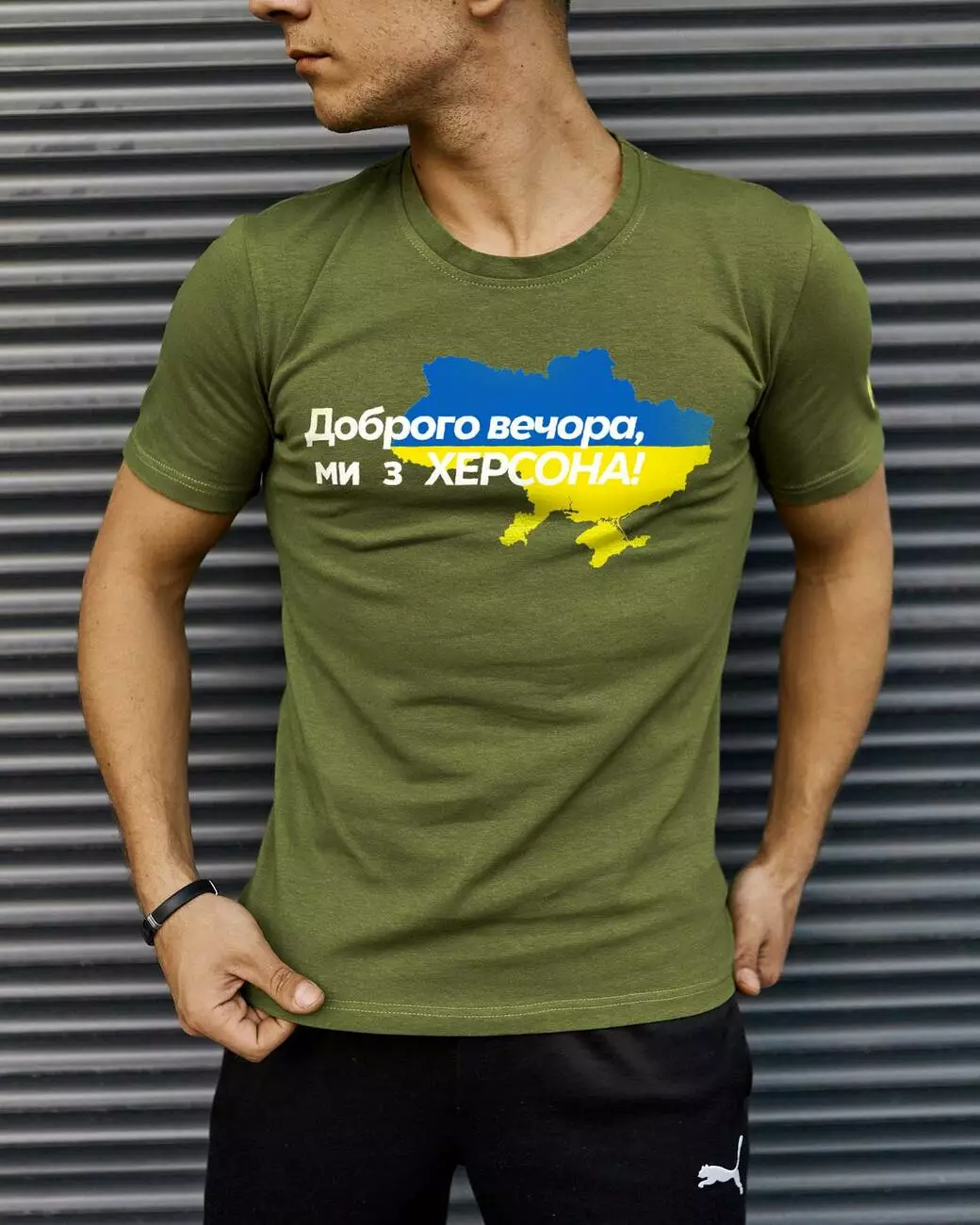 Футболка хакі з принтом "Доброго вечора ми з Херсона"