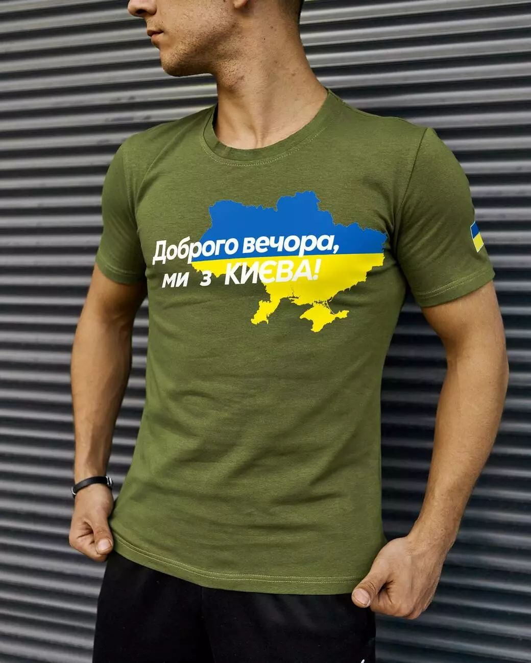 Футболка хакі з принтом "Доброго вечора ми з Києва"