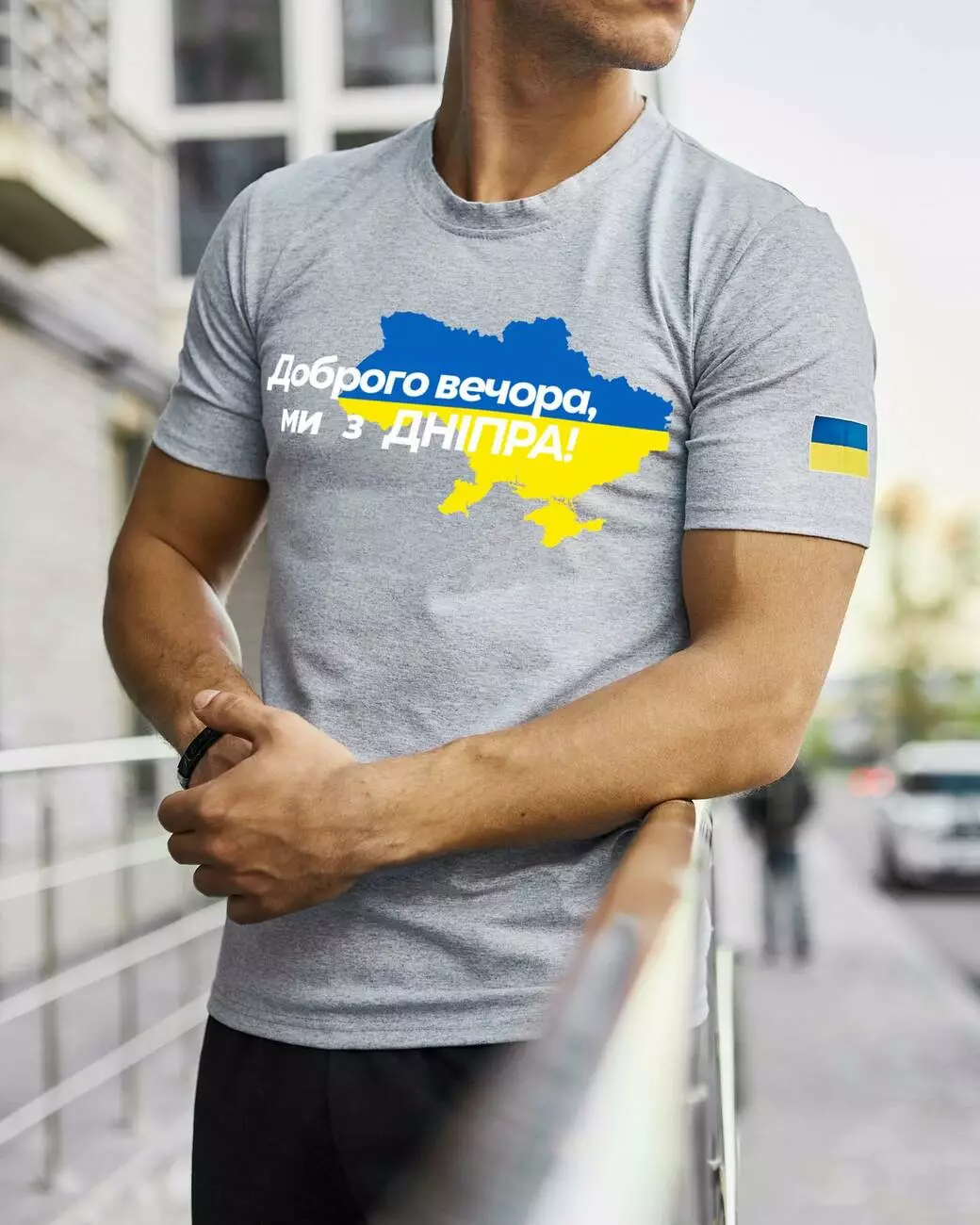 Футболка сіра з принтом "Доброго вечора ми з Дніпра"