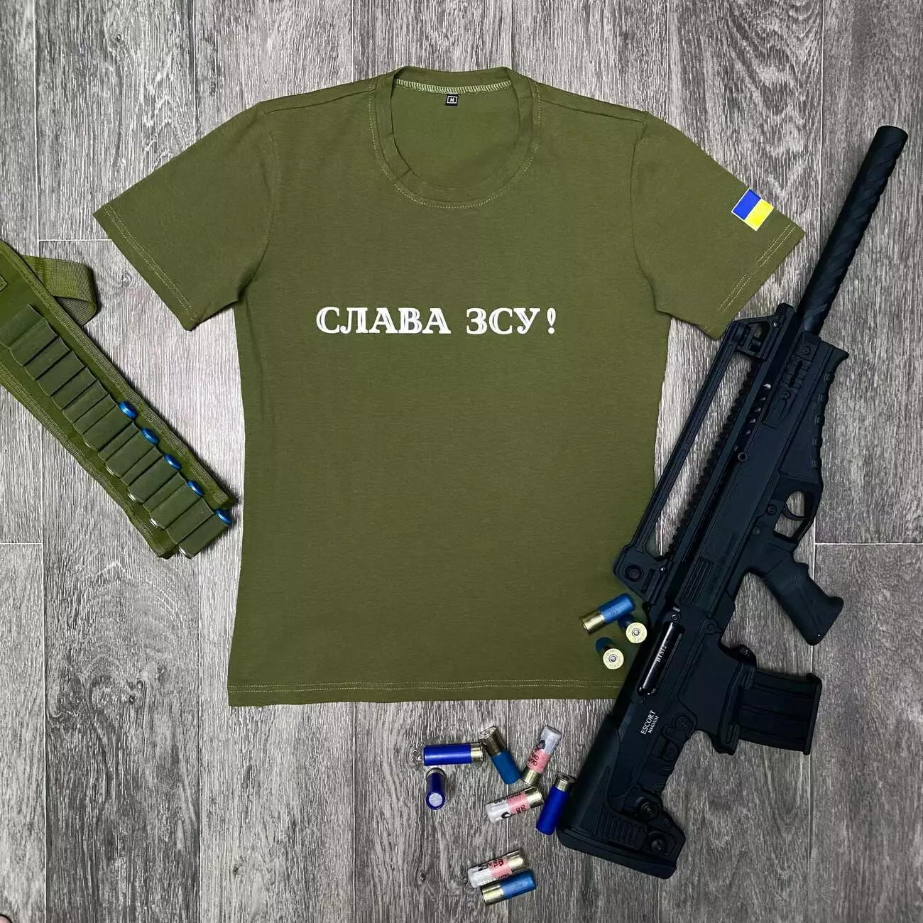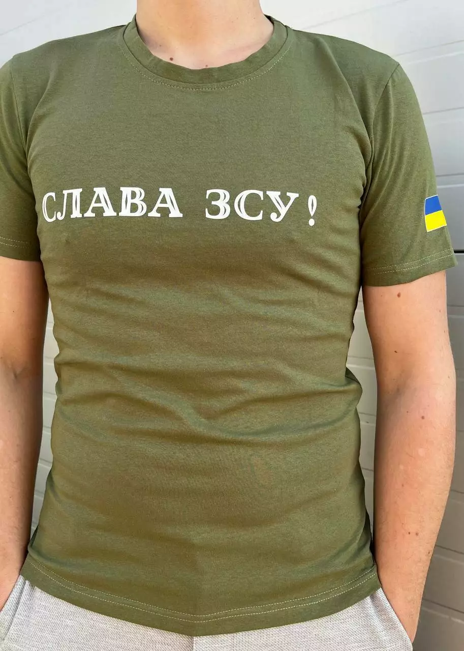 Класична однотонна футболка на кожен день з фірмовим принтом. Спереду по центру накатаний великий принт