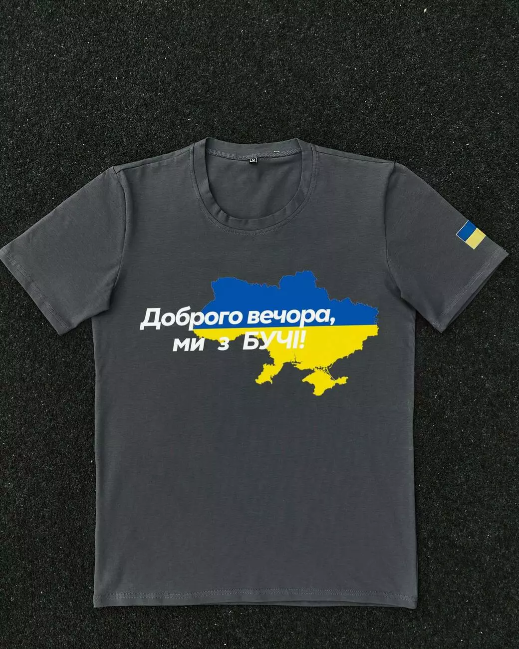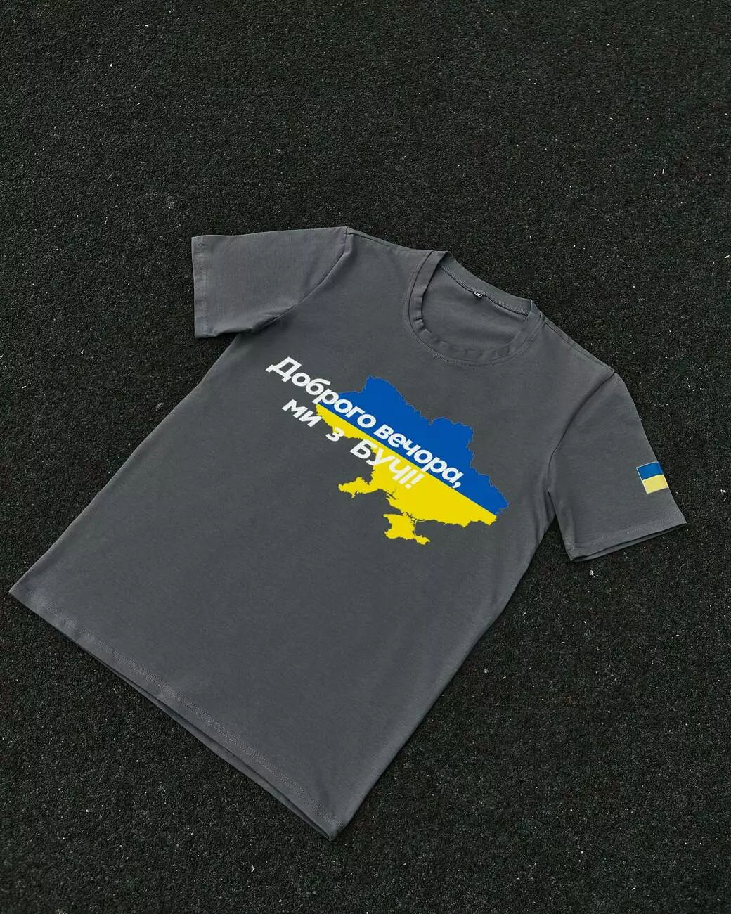 Футболка темно-сіра з принтом "Доброго вечора ми з Бучі"