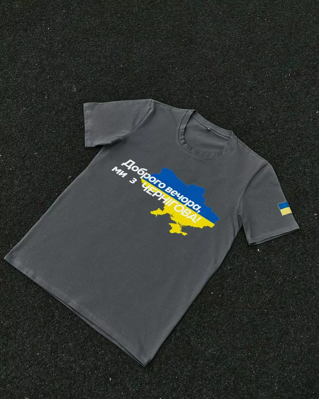 Футболка темно-сіра з принтом "Доброго вечора ми з Чернігова"