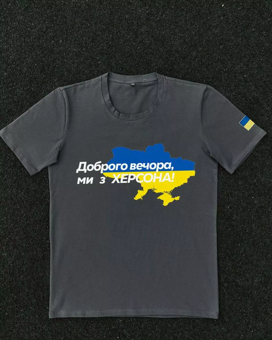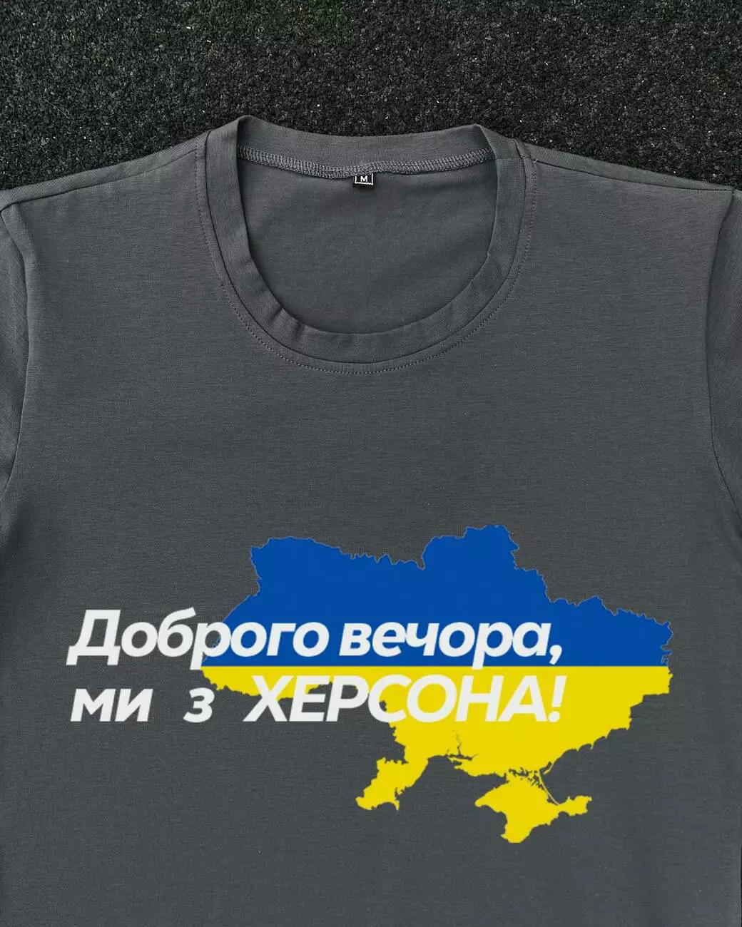 Футболка темно-сіра з принтом "Доброго вечора ми з Херсона"