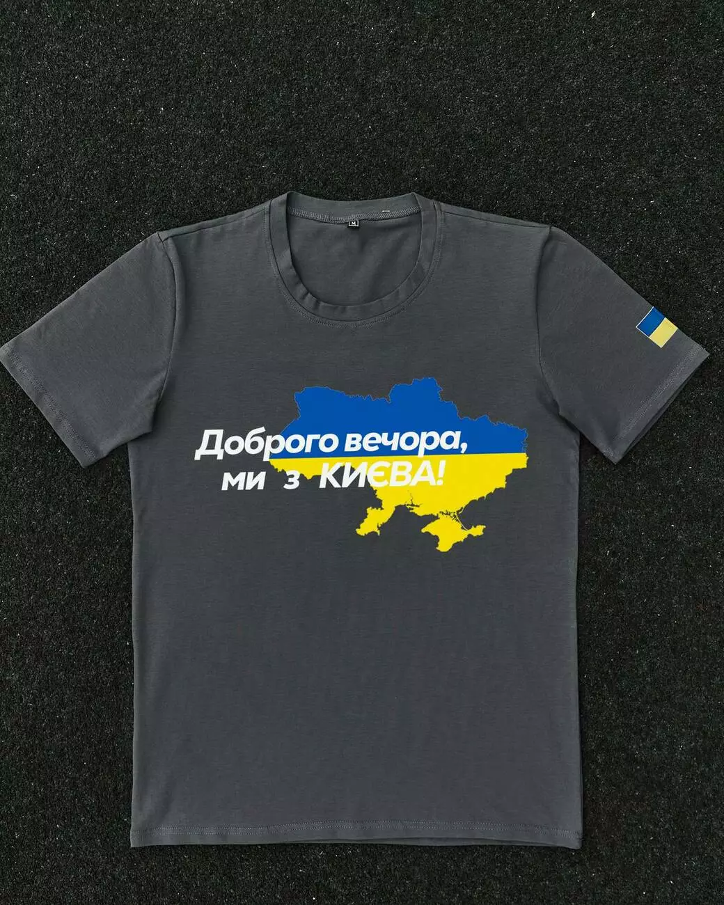 Футболка темно-сіра з принтом "Доброго вечора ми з Києва"