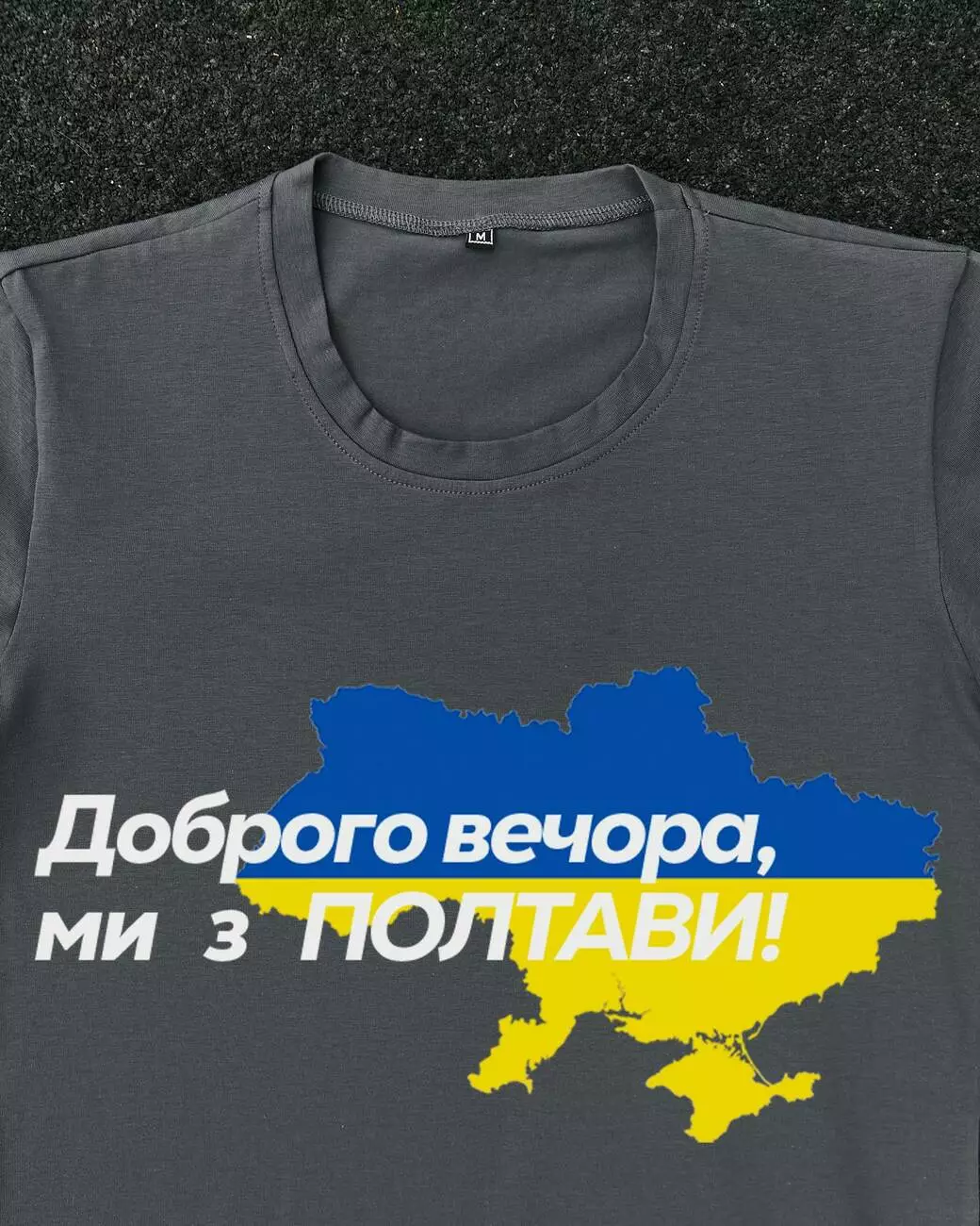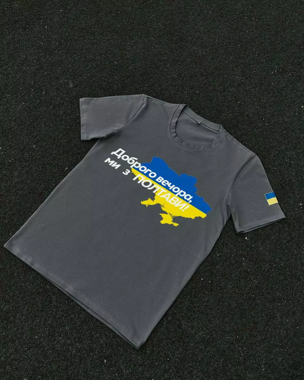 Футболка темно-сіра з принтом "Доброго вечора ми з Полтави"