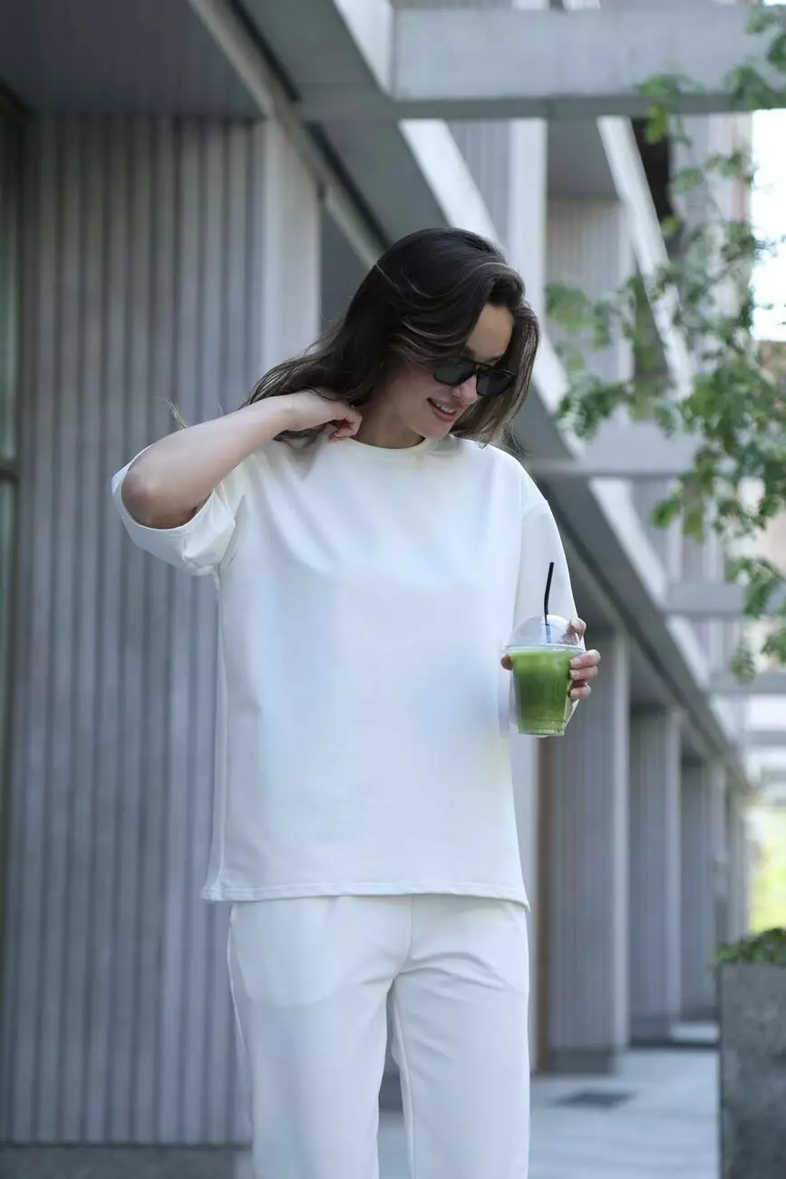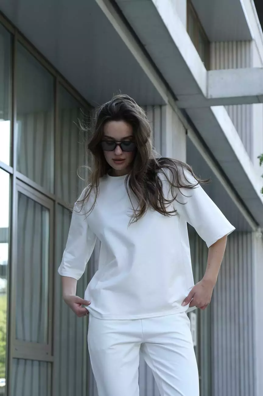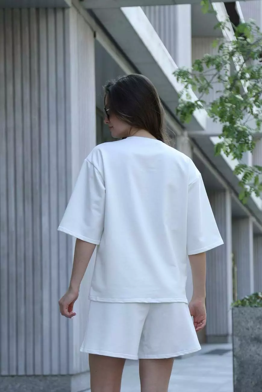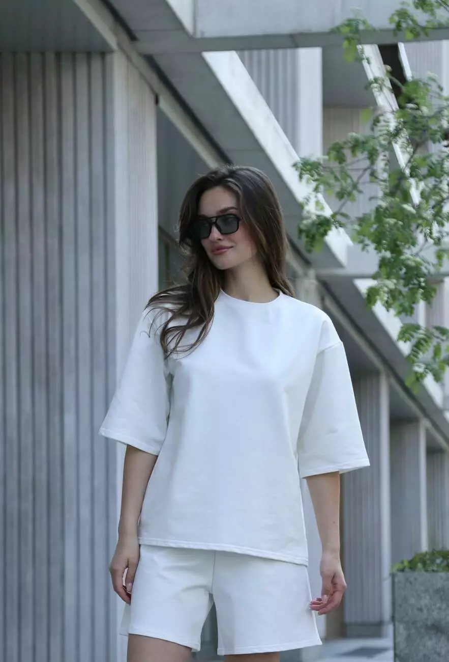 Футболка — оверсайз-крою з короткими рукавами, круглою горловиною та зручною посадкою.