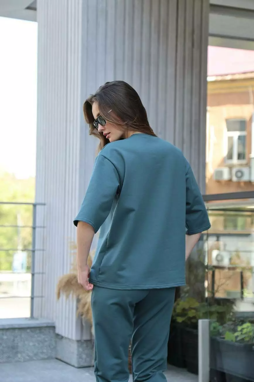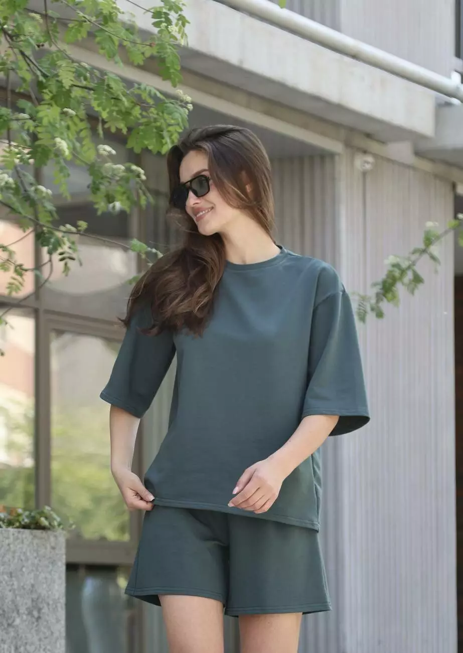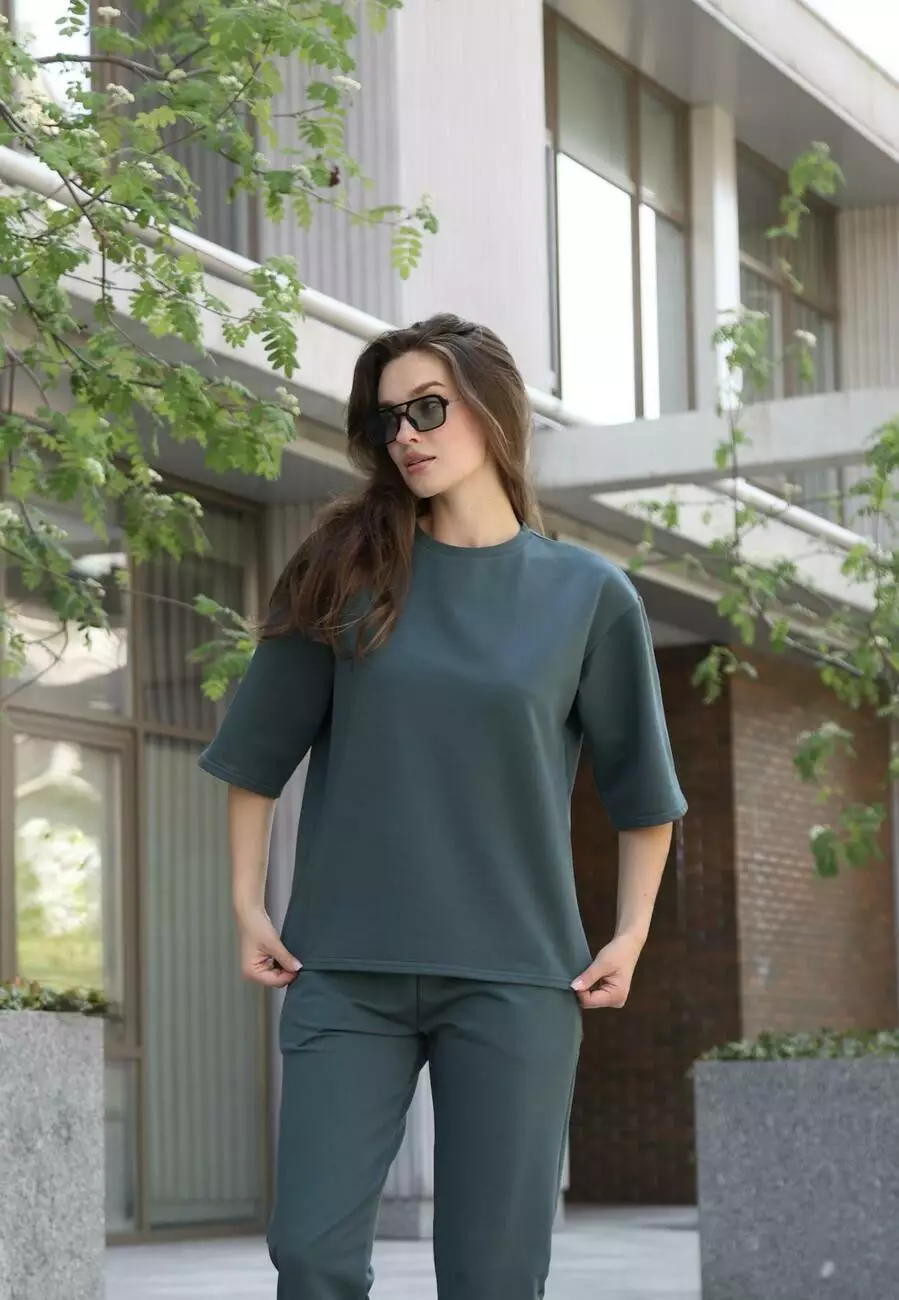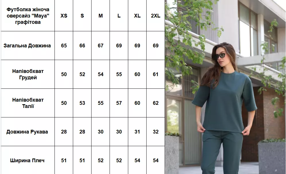 Футболка — оверсайз-крою з короткими рукавами, круглою горловиною та зручною посадкою.