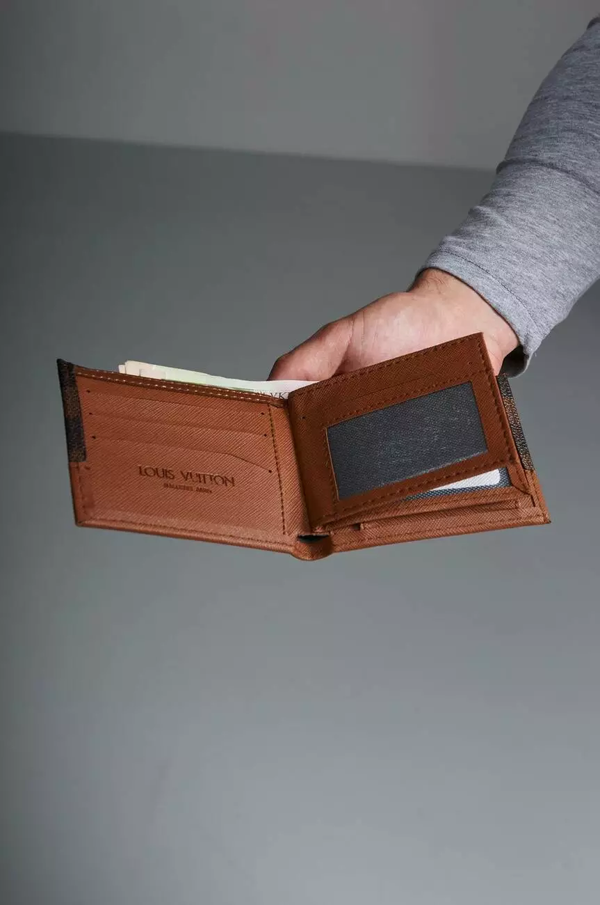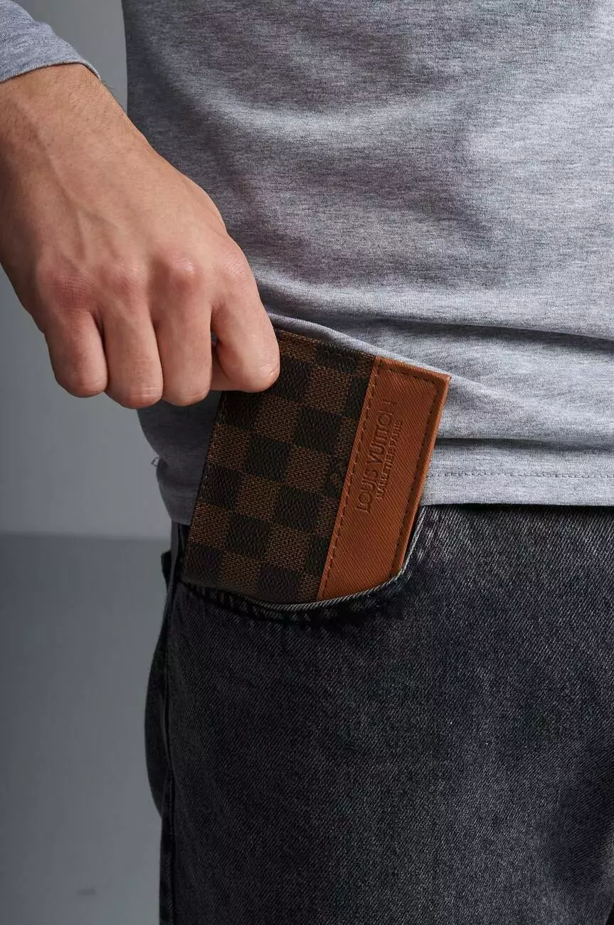 Гаманець шкіряний Louis Vuitton /коричнева клітка, без застібки