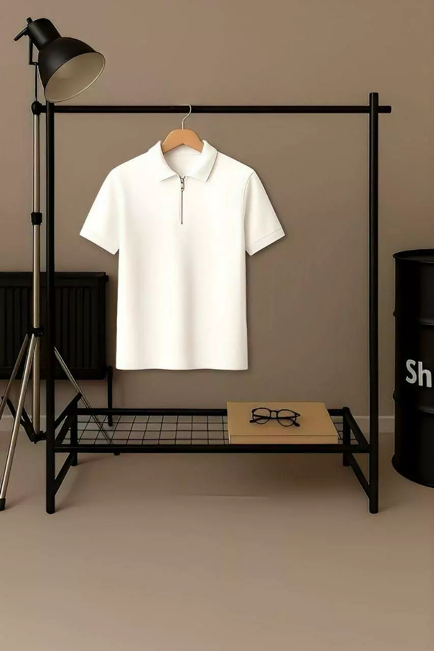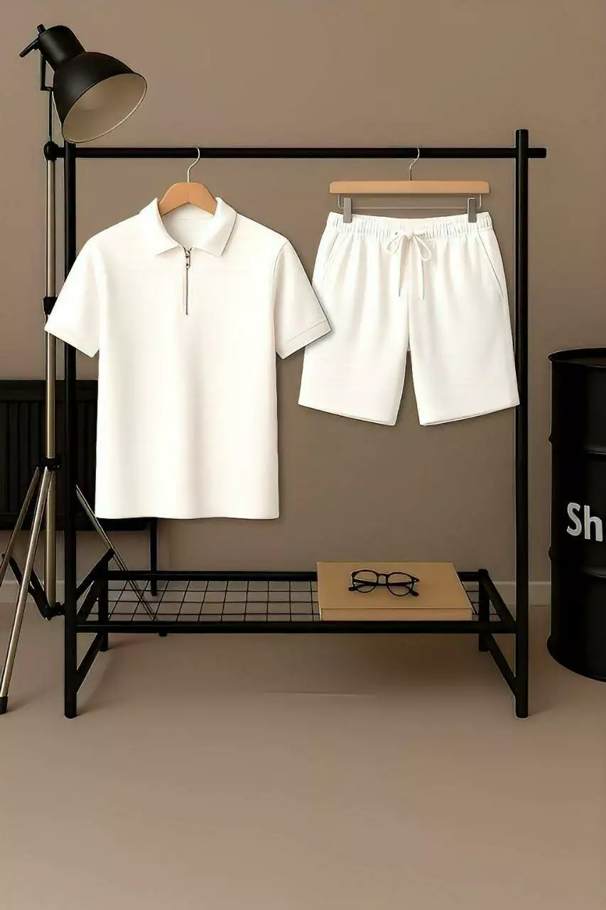 Комплект чоловічий "Anyday" поло на блискавці біле та шорти білі