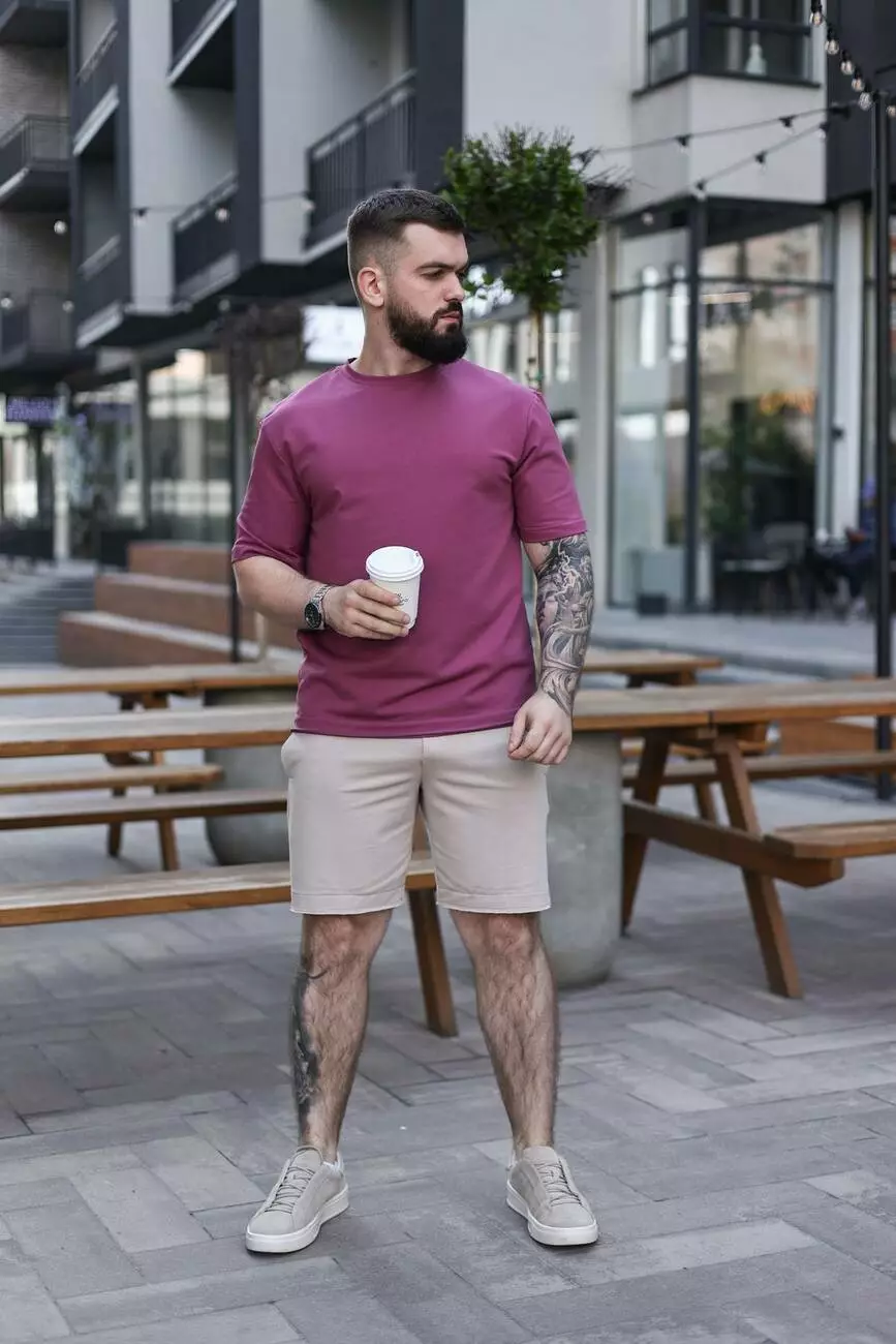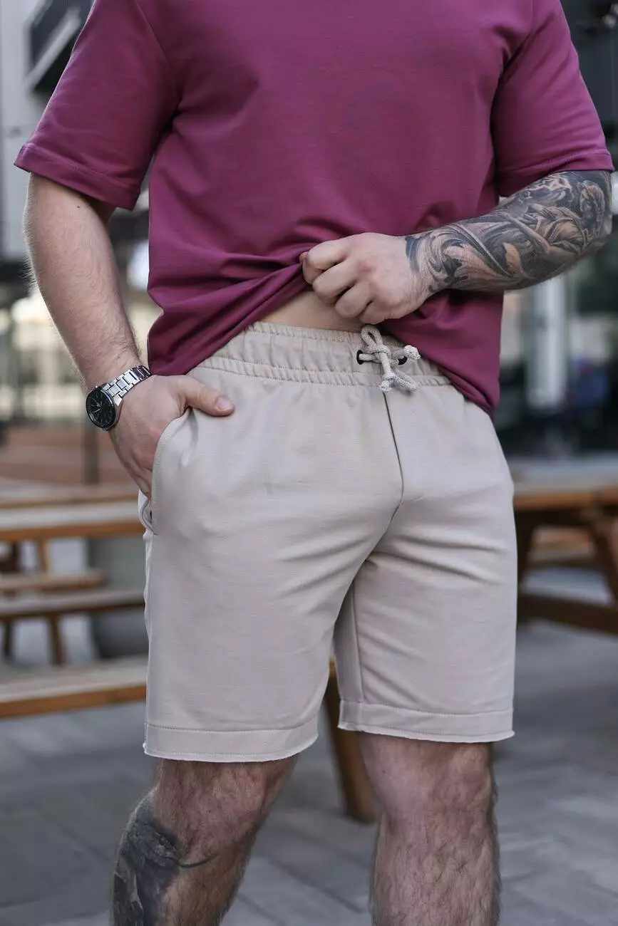 Комплект чоловiчий «Breeze» футболка темно-рожева + шорти бежеві