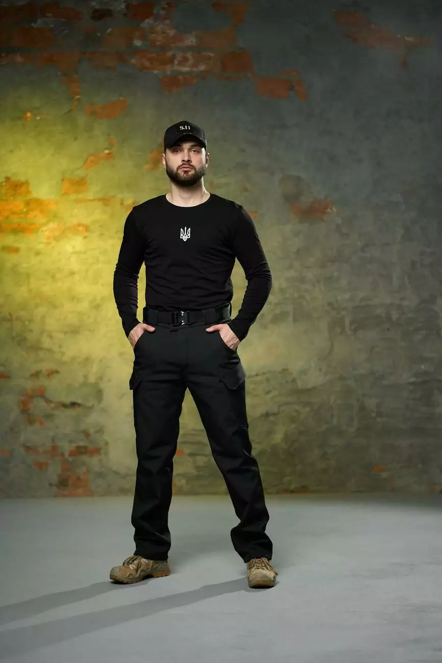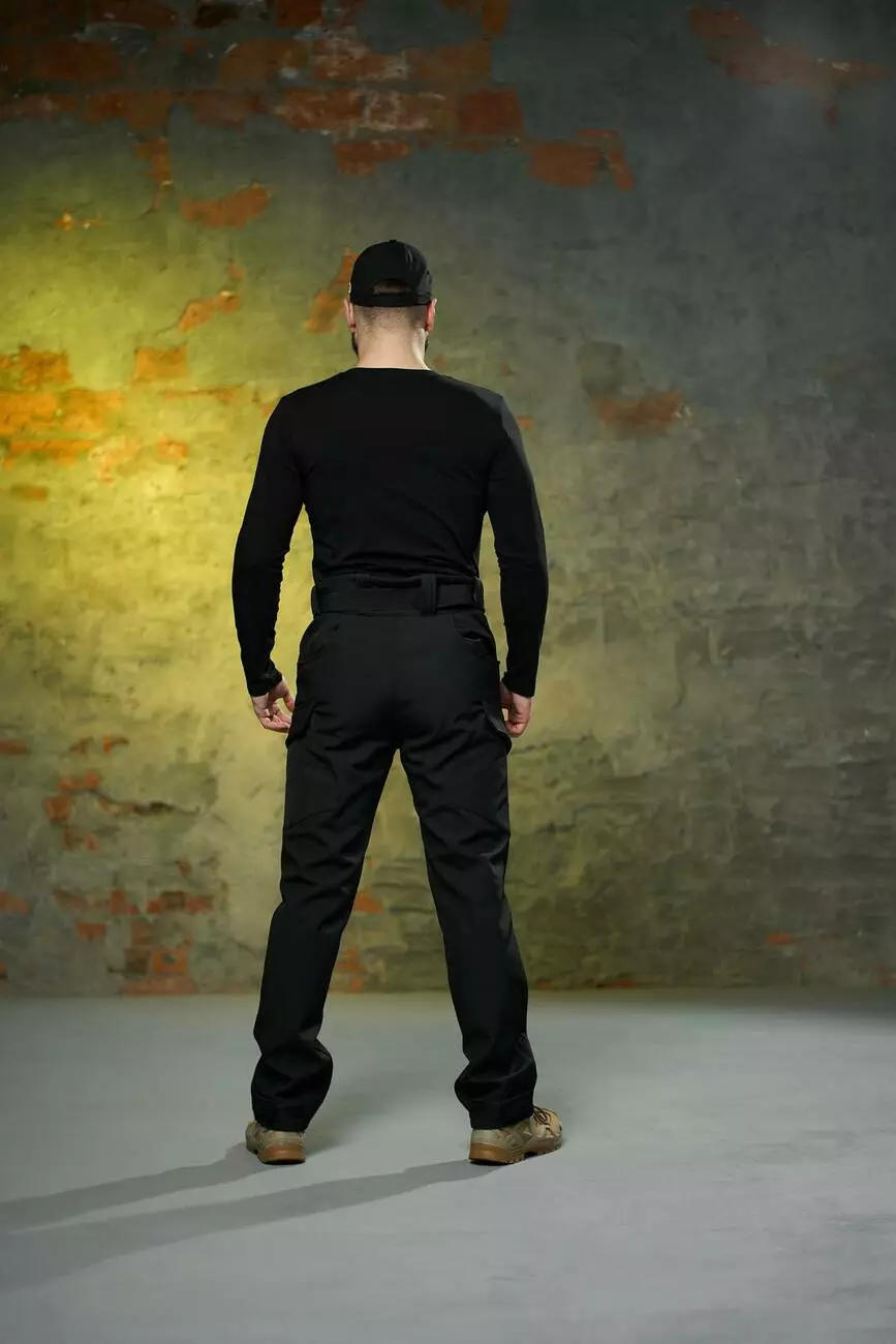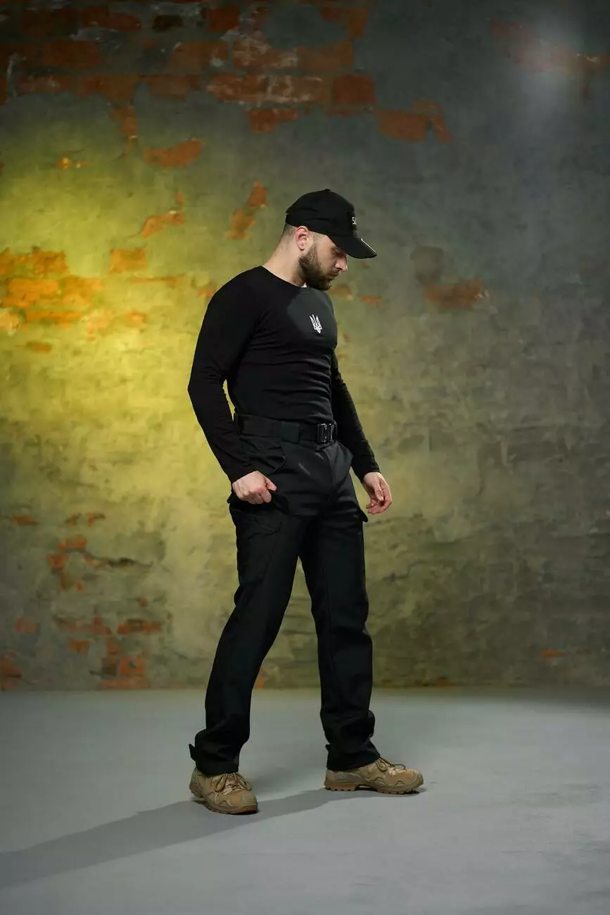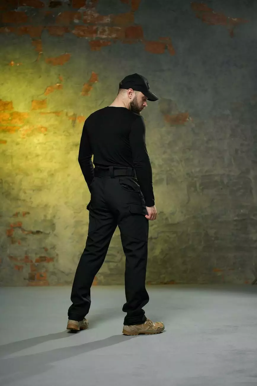 Комплект чоловічий чорний: штани soft shell на флісі "Peak" + лонгслів "Pulse" Intruder з тризубом