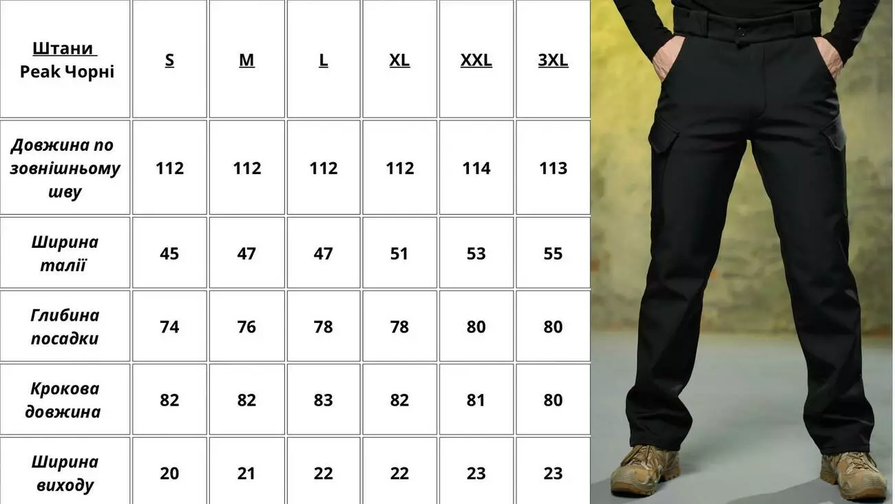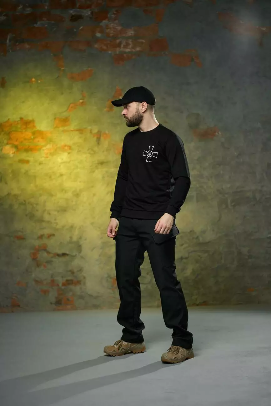 Комплект чоловічий чорний: штани soft shell на флісі "Peak" + світшот з емблемою ЗСУ
